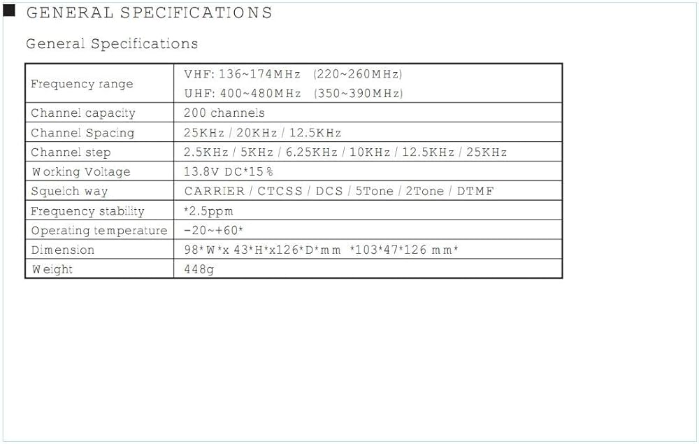 Function:FM radio,PTT ID, DTMF,Remote stun,Remote kill,Remote revive,Repeater,Alarm,Monitor,High/Low Power Settings.