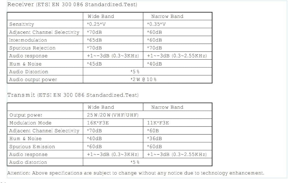 Frequency range:Frequency range:144-148 (VHF)/222-225 (1.25M)/420-450MHz(UHF)(Rx/Tx).