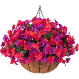 GOOD QUALITY: The hanging basket and artificial bougainvillea flowers were made of good quality material that don't require maintenance after assembly. It's UV resistance and won't fade, sturdy enough for any weather. No watering needs. It looks full and beautiful all season.