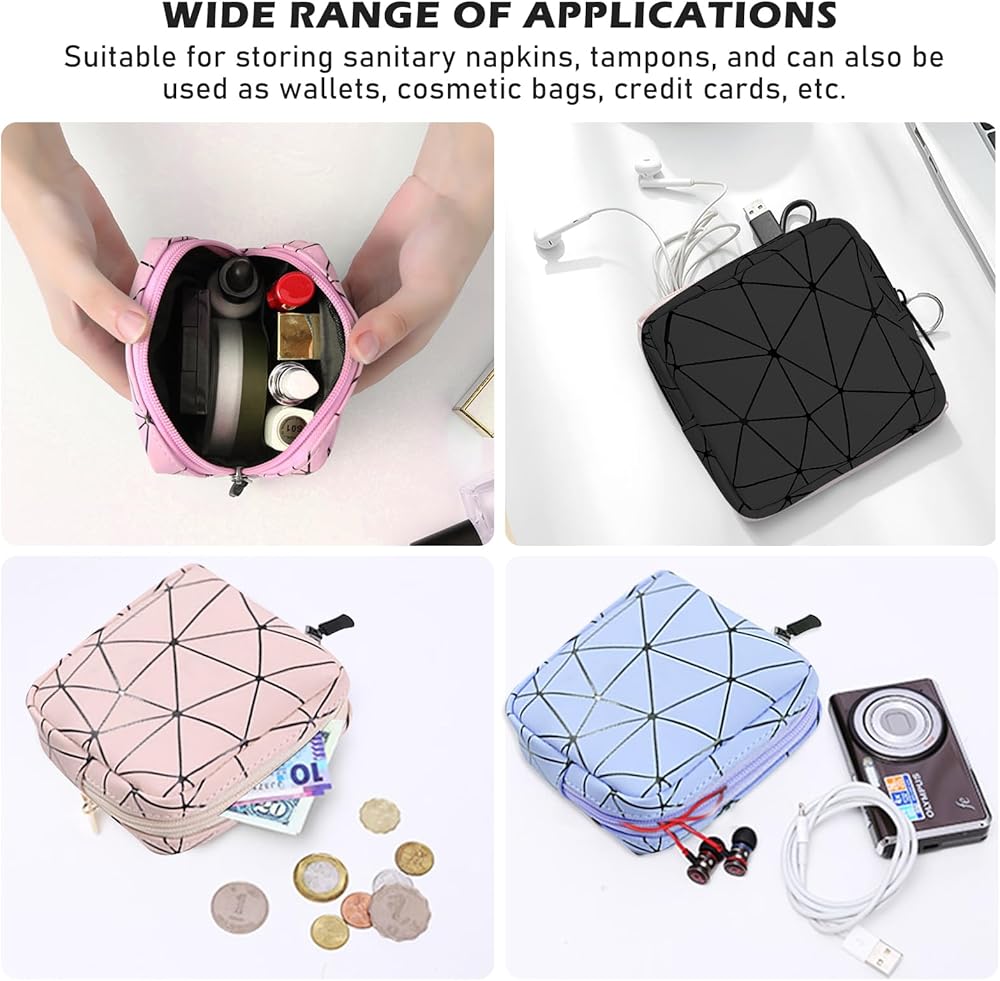 【EASY TO CARRY】The sanitary napkin storage bag is ideal for daily use, sanitary napkin storage bag iconvenient to carry, portable period kit bag can be easily put in your pocket or handbag in school, office, outdoor or traveling.