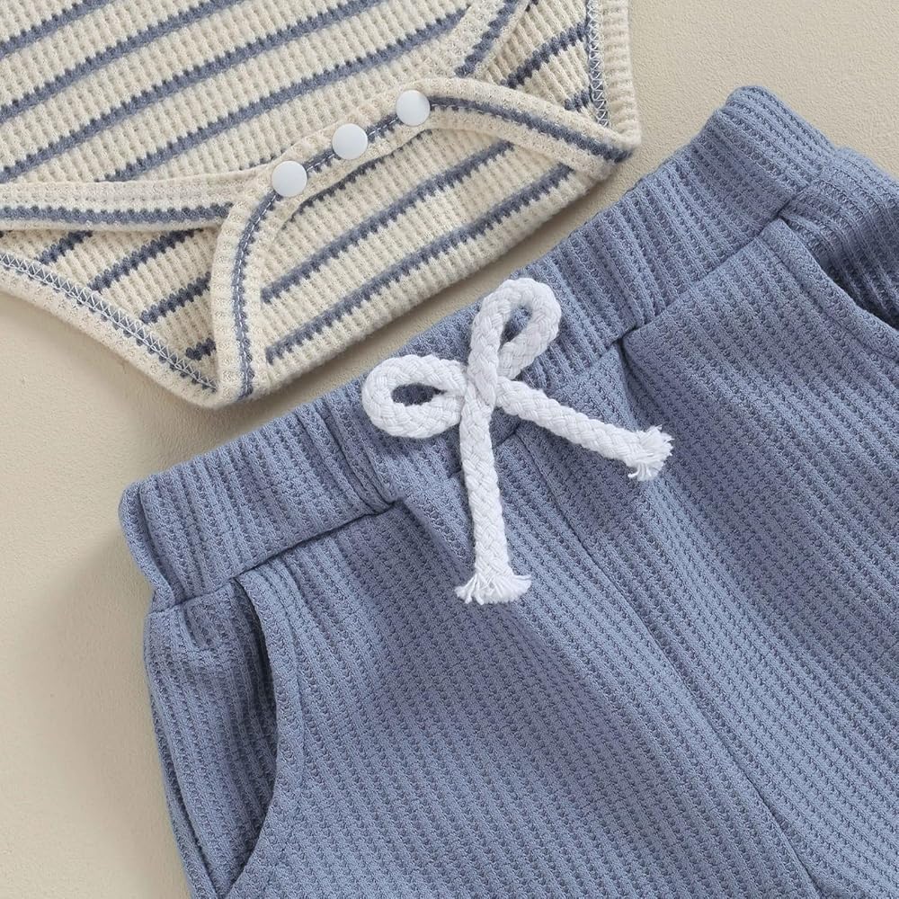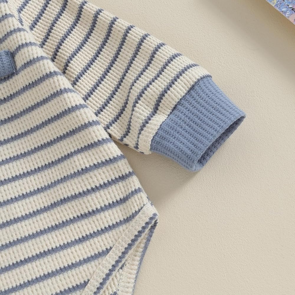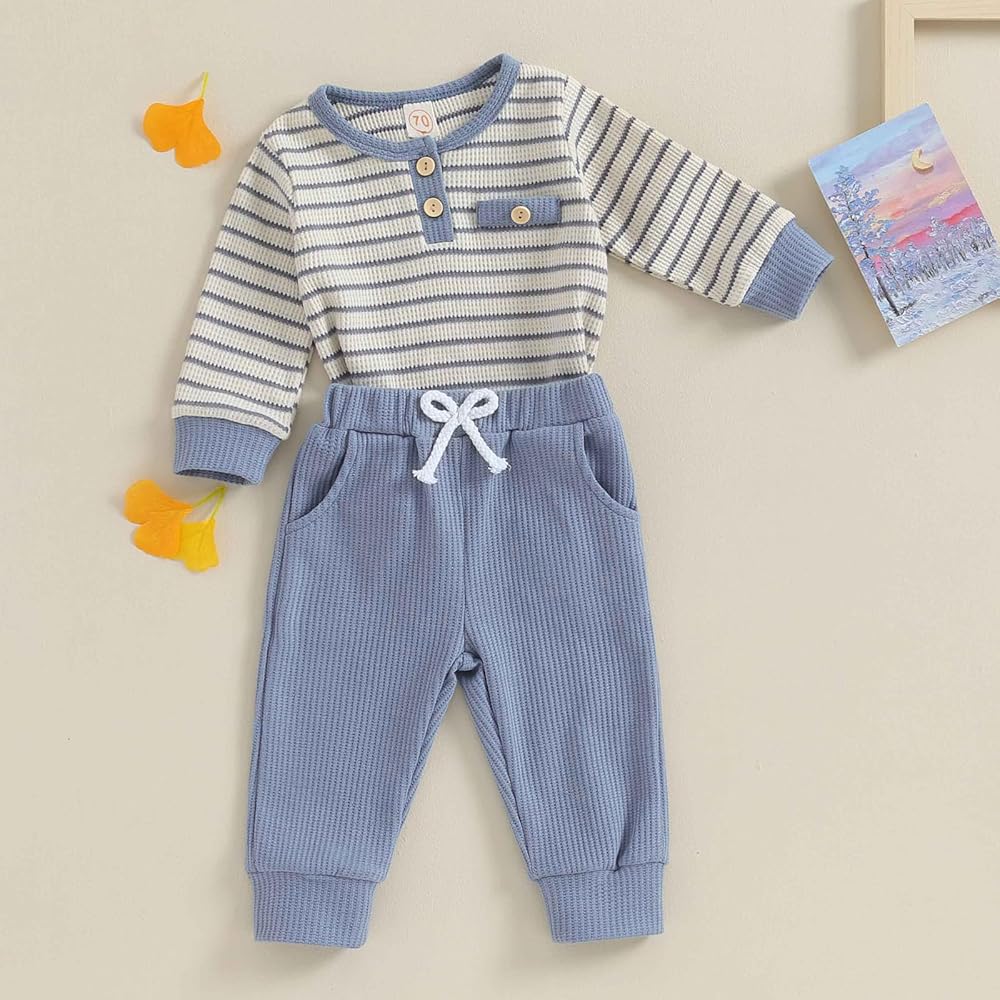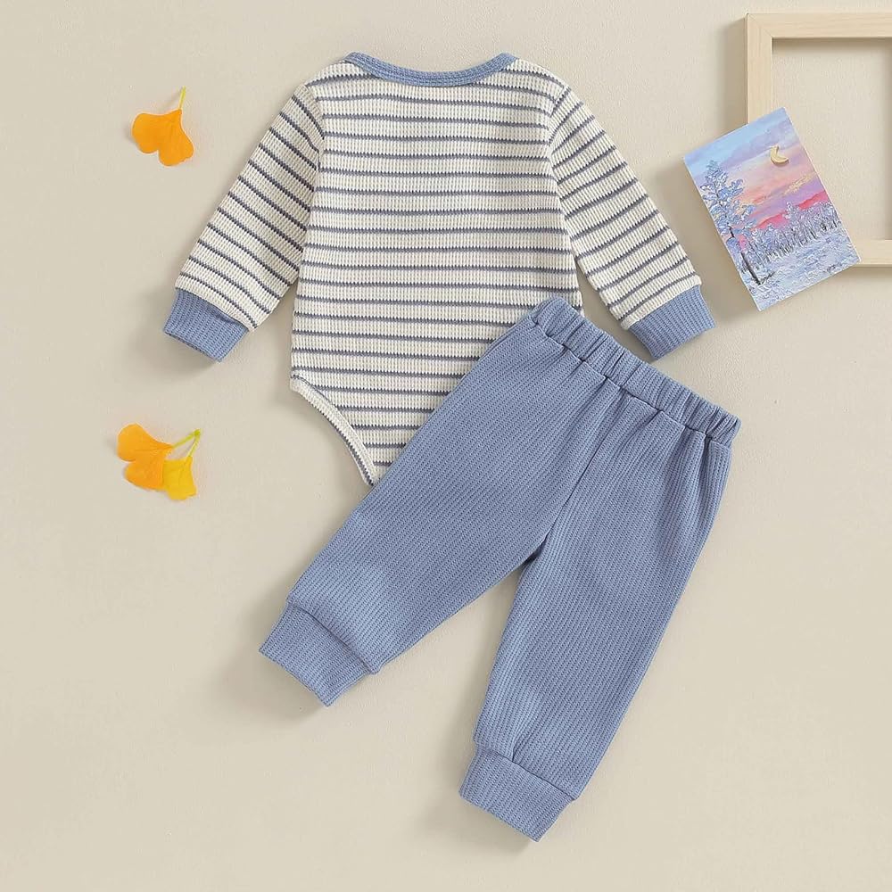 Newborn Baby Boy Fall Outfit Long Sleeve Striped Onesie Romper Solid Pants Winter Clothes Set