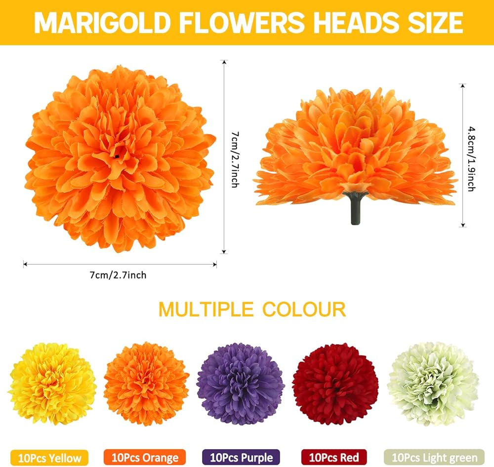 【Gorgeous Decorations for Festival】Marigolds Flowers will be great decorations for your festivals. Marigolds artificial Flowers added the perfect touch to Diwali decoration, Indian festivals, Indian Garland decor, Thanksgiving decoration, Halloween decoration, Christmas, etc.