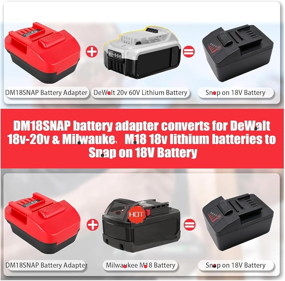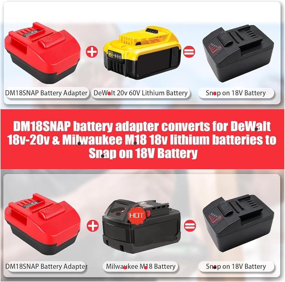 for Dewalt & for Milwaukee to Snap on 18V CTB8185 CTB7185 Adapter, Fit for Dewalt 18v-20v & for Milwaukee 18v M-18 Lithium Batteries, DM18SNAP Converter use for Snap On 18V Li-ion Battery Power Tools