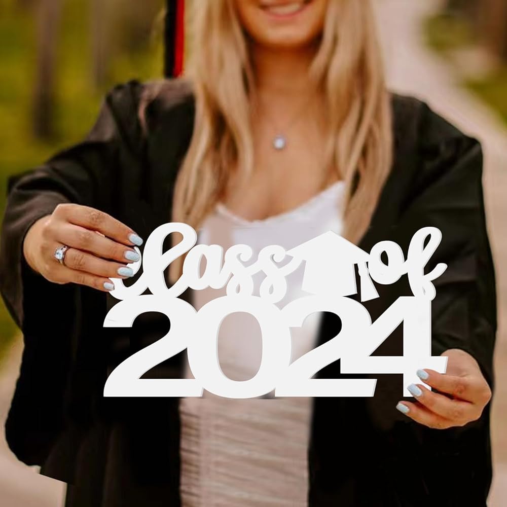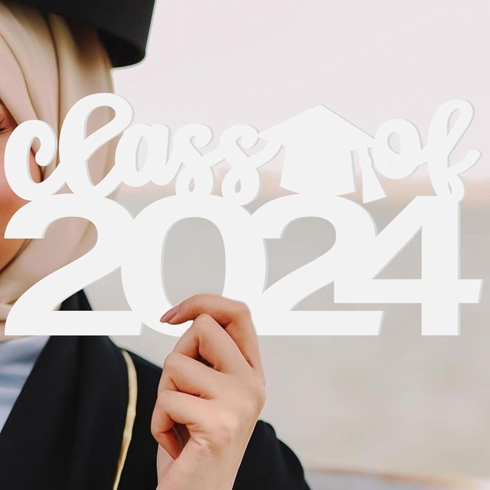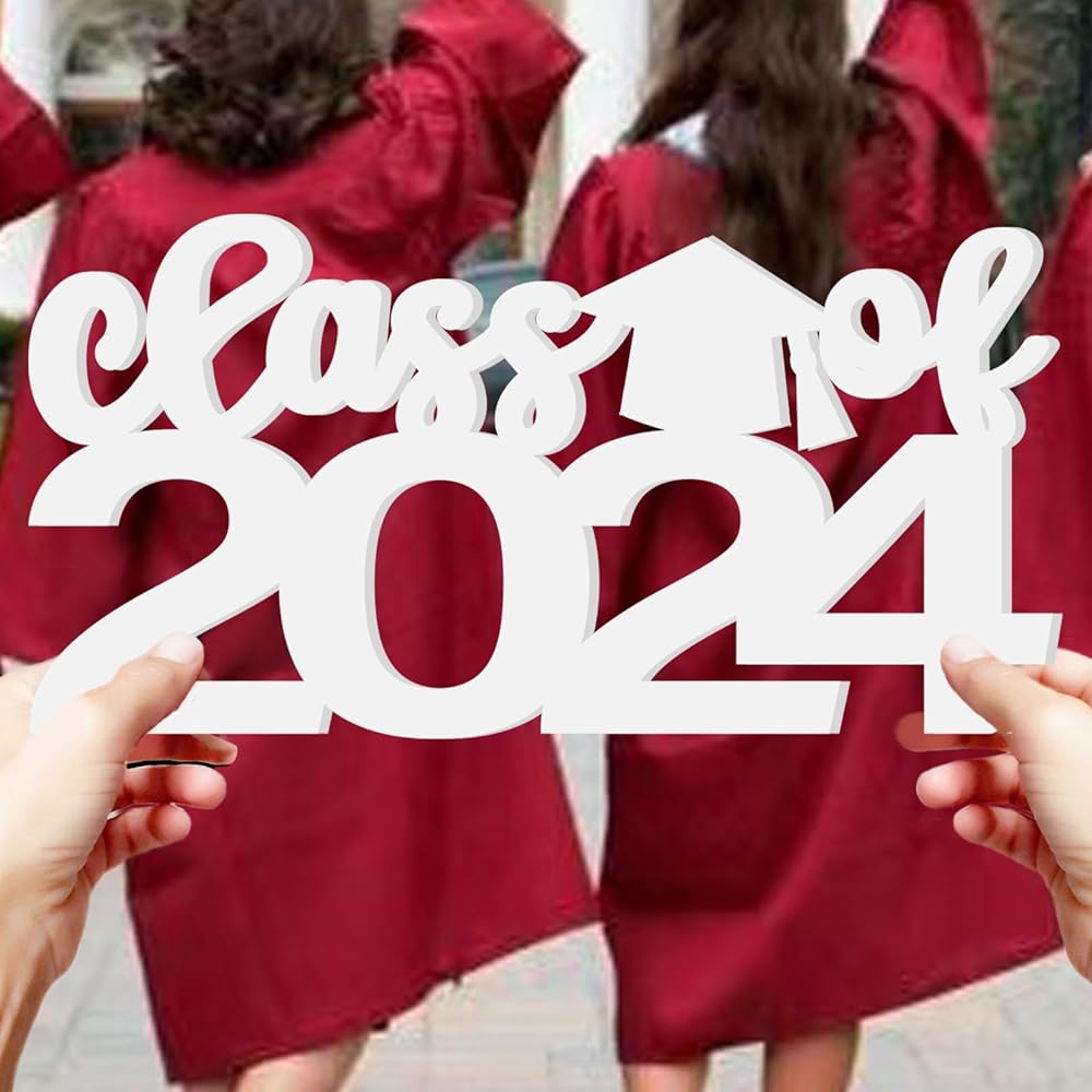 Class of 2024 Graduation Decoration Sign - Photo Props, Senior Picture Prop, Letter Word Sign for Back to School Decor - White