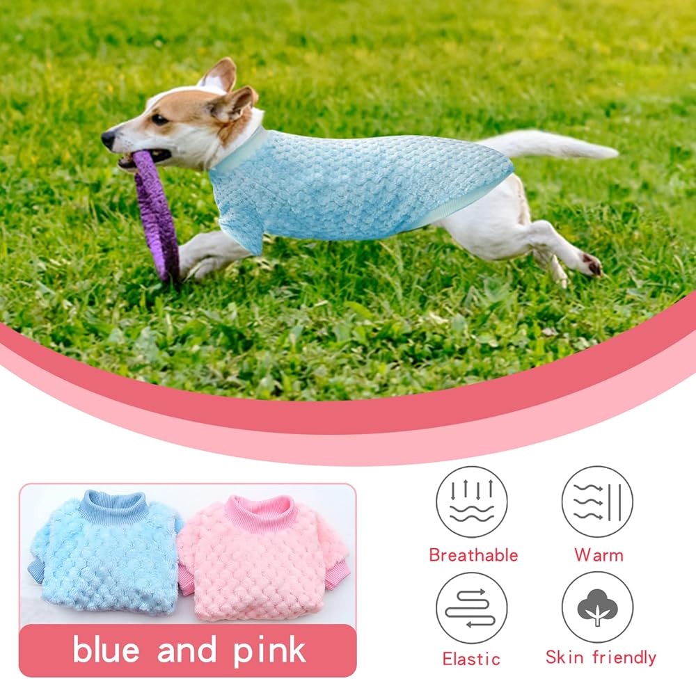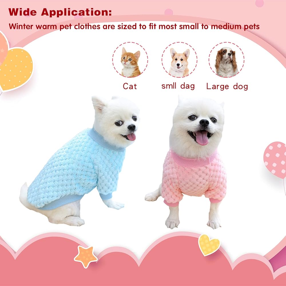 2 Pieces Winter Warm Puppy Clothes Fleece Pet Sweater Soft Coral Fleece Pet Clothes Pet Supplies Cat Outfit Cute Pullover for Small to Medium Pets (X-Large, Pink/Blue)