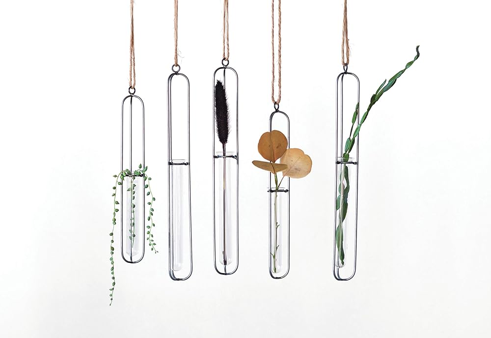 Test tube vases are ideal for displaying a single botanical, colored sand or other small decorative objects. Hang this vase in any space for an amazing additional to the room décor.