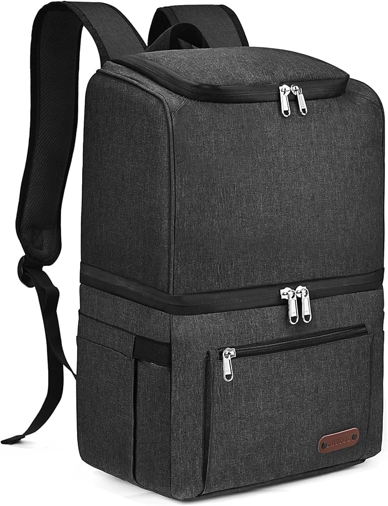 【Durable & Material】Cooler backpack‘s outer layer is made of high-density Oxford cloth, will not tear or scratch, durable and the inner layer of the lunch box is made of PEVA seamless lining, which can keep food cold / warm / fresh for a long time