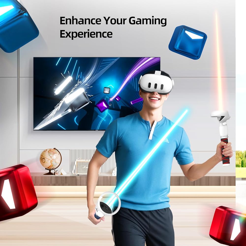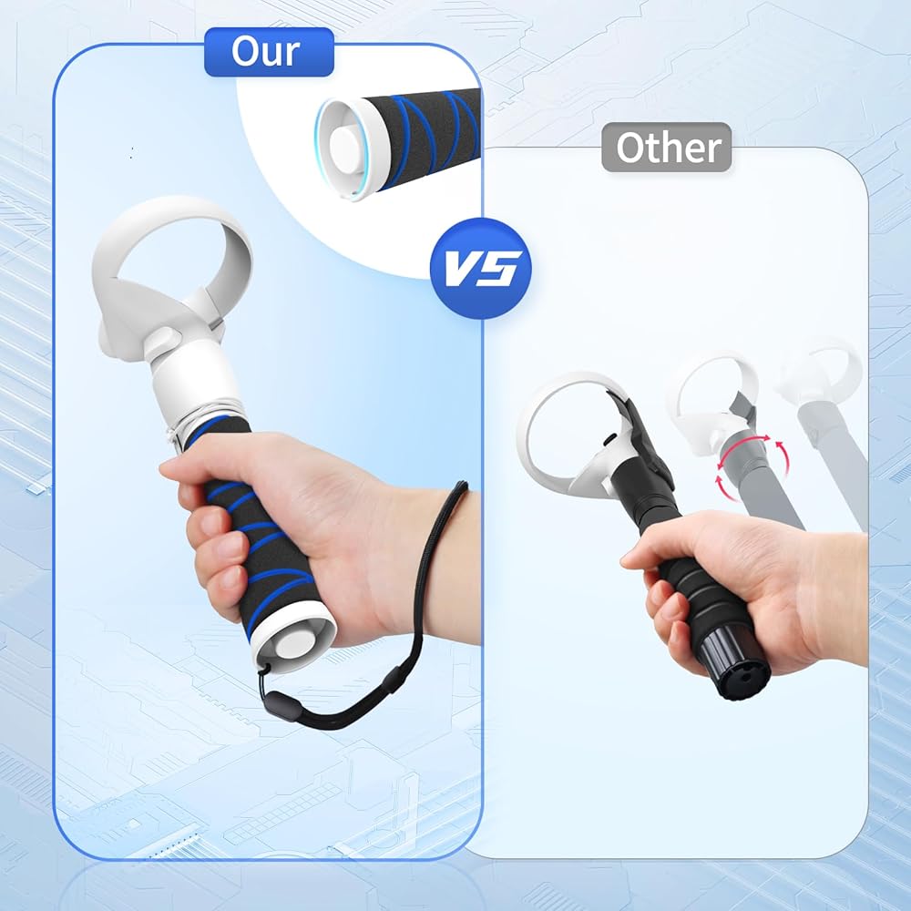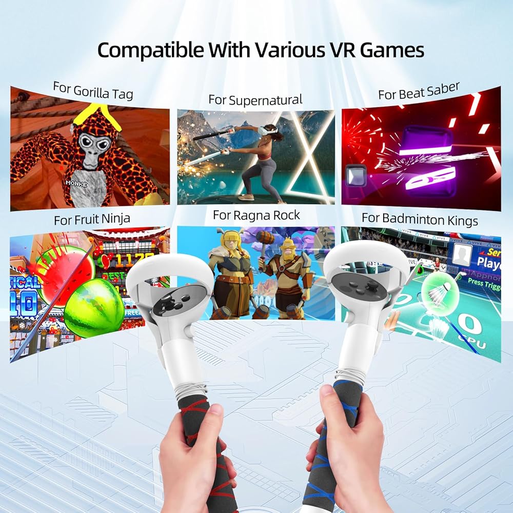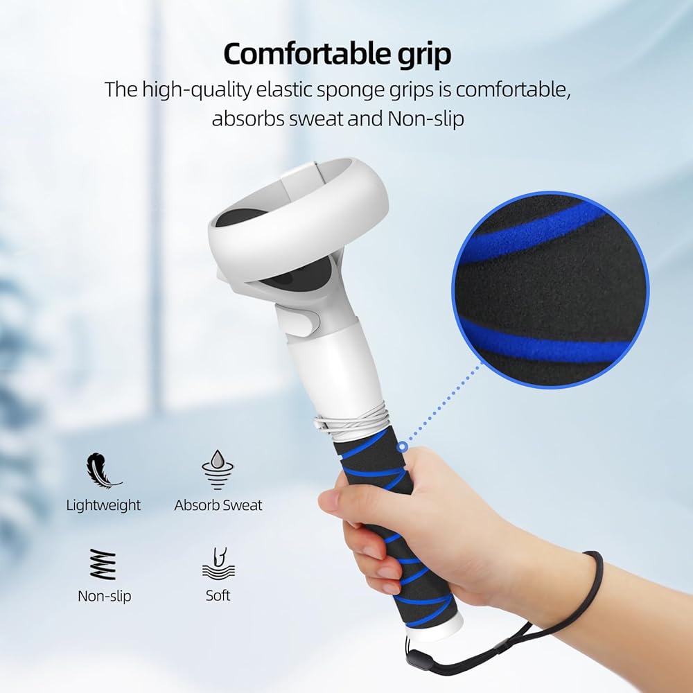 【Soft & Comfortable Grip】: High-quality soft sponge adds more comfort to the grip extension, which is easy to hold, sweat-absorbent and non-slip. It provides players with a more realistic VR gaming experience in games like Gorilla Tag, Beat Saber, Fruit Ninja and more.