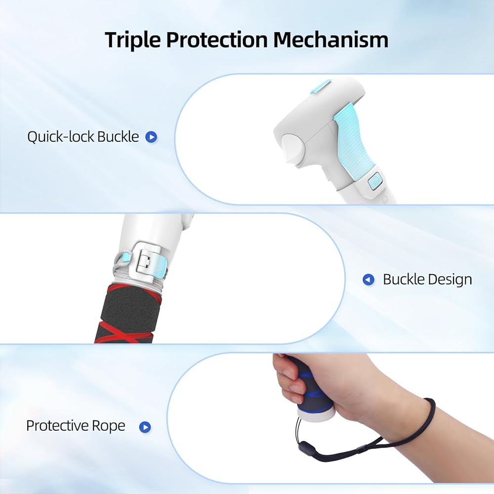 【Triple Protection Mechanism】Patented Solid Structure Design and Innovative Lock Buckle Design ensures that the controller is firmly fixed to the extension grips for quest 2, and the Enhanced Protective Rope prevents the controller from being accidentally dropped during intense VR gaming. Triple protection mechanism to protect your controller and enhance your gaming experience.