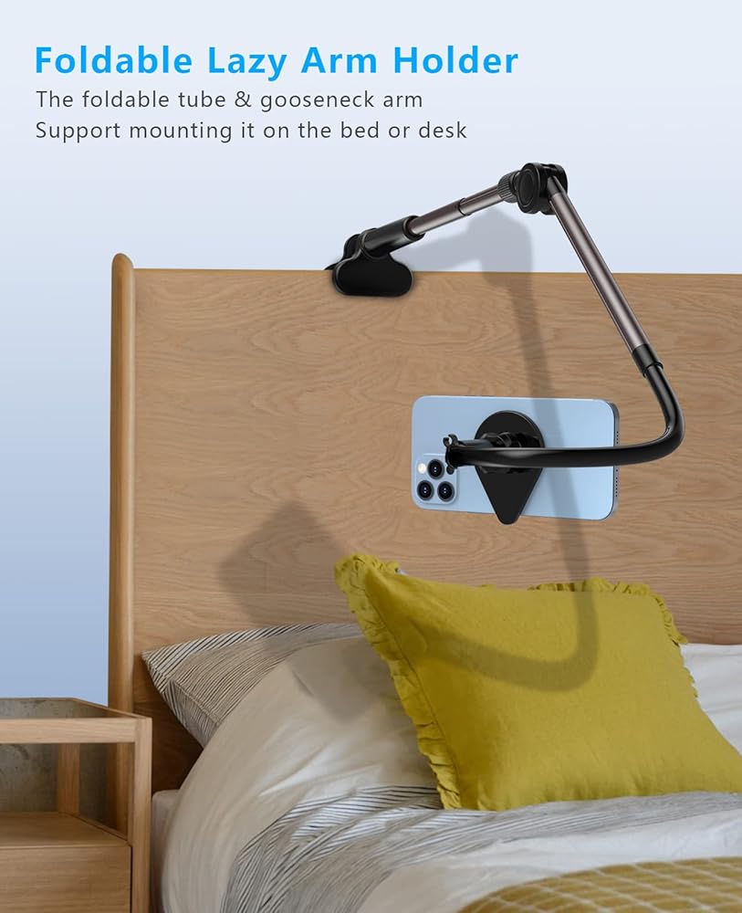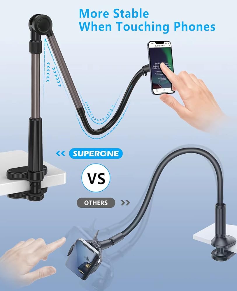 Mag Safe Gooseneck Phone Holder, SUPERONE Phone Mount for Bed/Desk, Flexible Lazy Long Arm Headboard Bedside, Overhead Mount Stand for iPhone 16 15 14 13 12 Series & MagSafe Case Kindle iPad All Phone