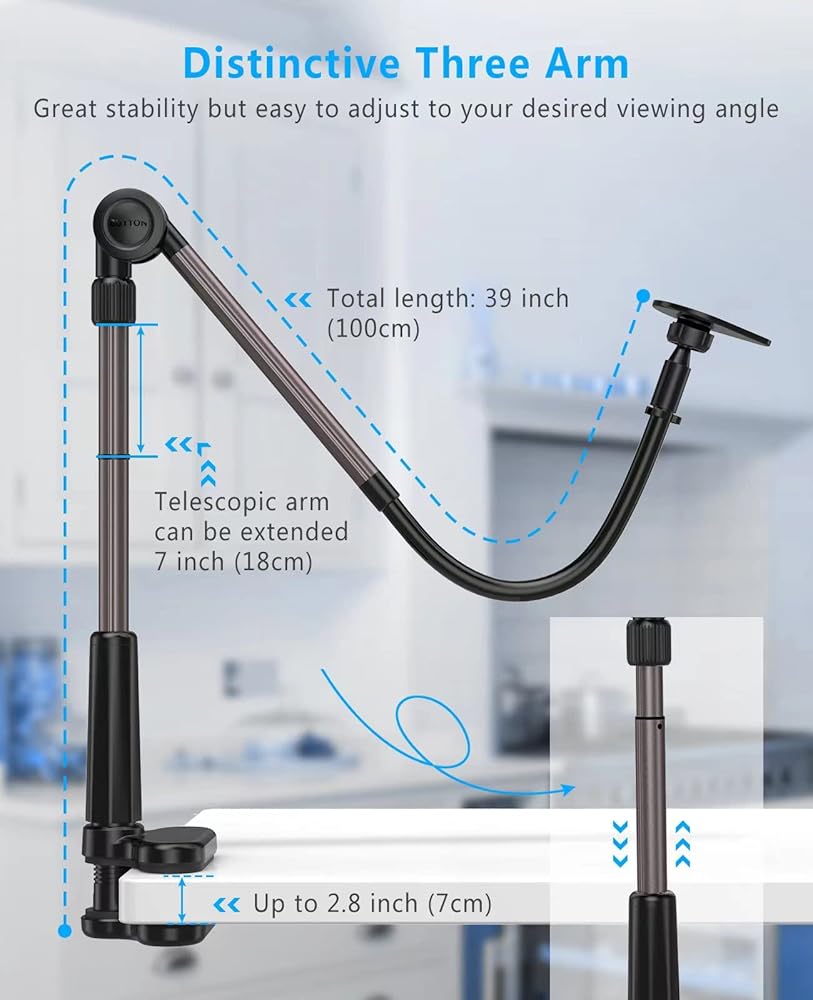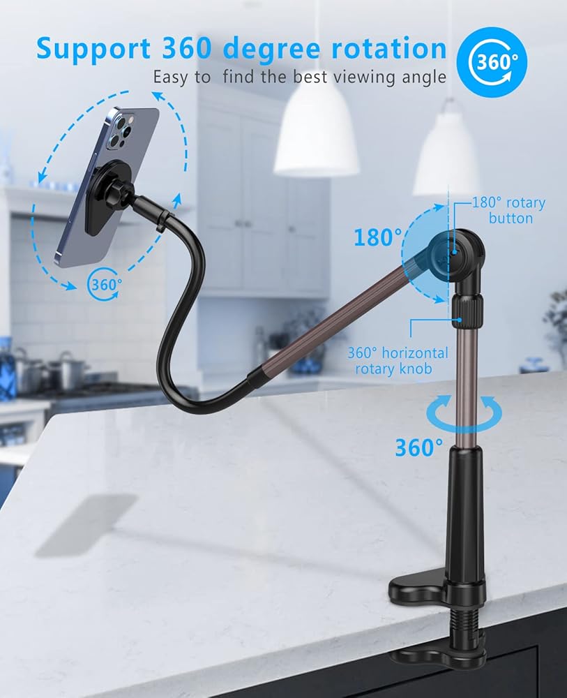 Multipurpose Phone Holder: Perfect for using iPhone to watch movies & enjoy music in the bedroom, bathroom, kitchen, gym and office, free your hands, reduce neck fatigue and easily position your phone at the desired distance. And it also can be an overhead phone holder for video recording.