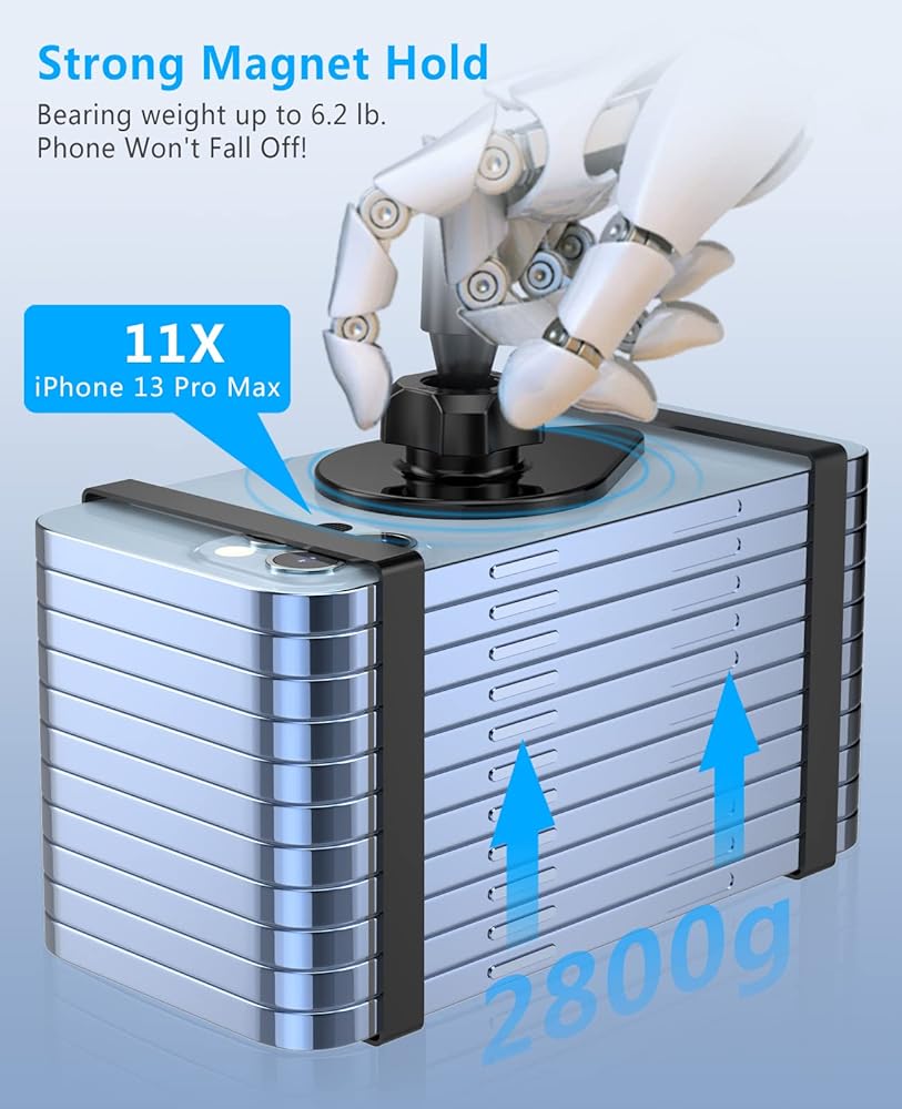 Powerful Magnetic Mounts: 23* N52 powerful magnets to ensure hold your phone firmly. The super powerful magnetic force up to 2800g absolutely guarantees to keep your phone from falling off! At the same time, the closed magnetic field will not affect your iPhone signal, so don't worry it will affect your iPhone usage.