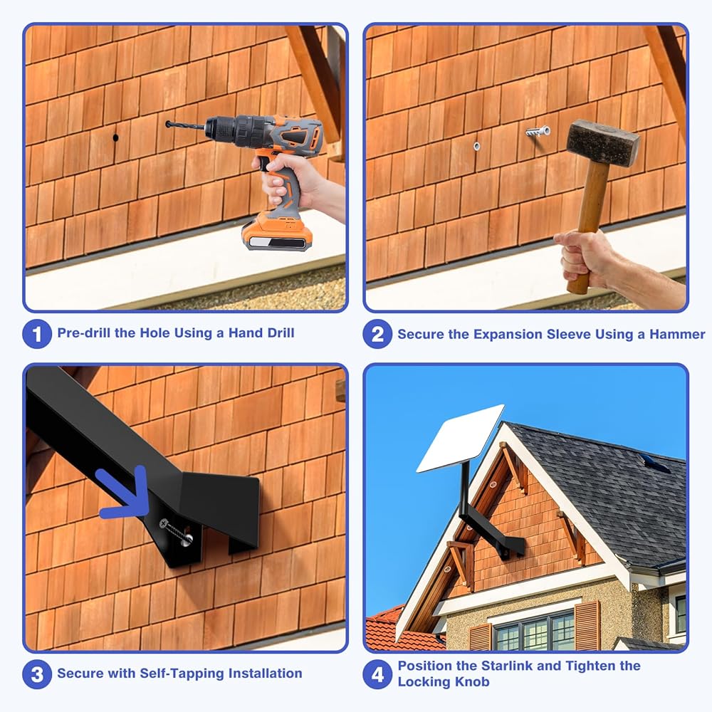 【Easy Installation for Everyone】Installing the starlink long arm wall mount requires no professional skills or a significant amount of installation time. The Adalov Starlink Wall Mount comes with all the necessary hardware. With various screws provided for quick installation on different wall types, you can find installation diagrams for different screws on the product details page, making it easy for you to get started quickly without spending too much time on the installation process.