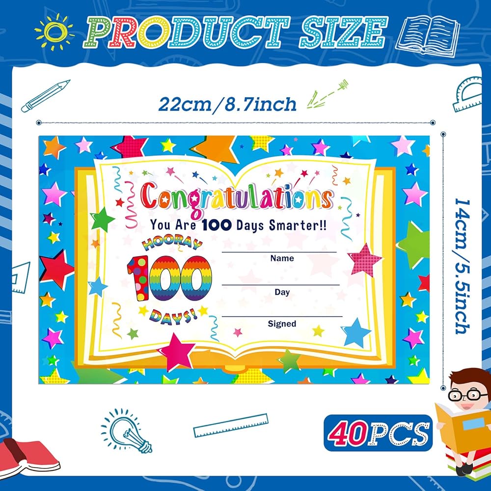 Abundant Amount: you will get 40 pieces of happy 100th day certificate paper, which are enough to be sent to the children in the class, this 100 days certificate is suitable for celebrating 100 days of school, creating a cheerful atmosphere for the 100th day party