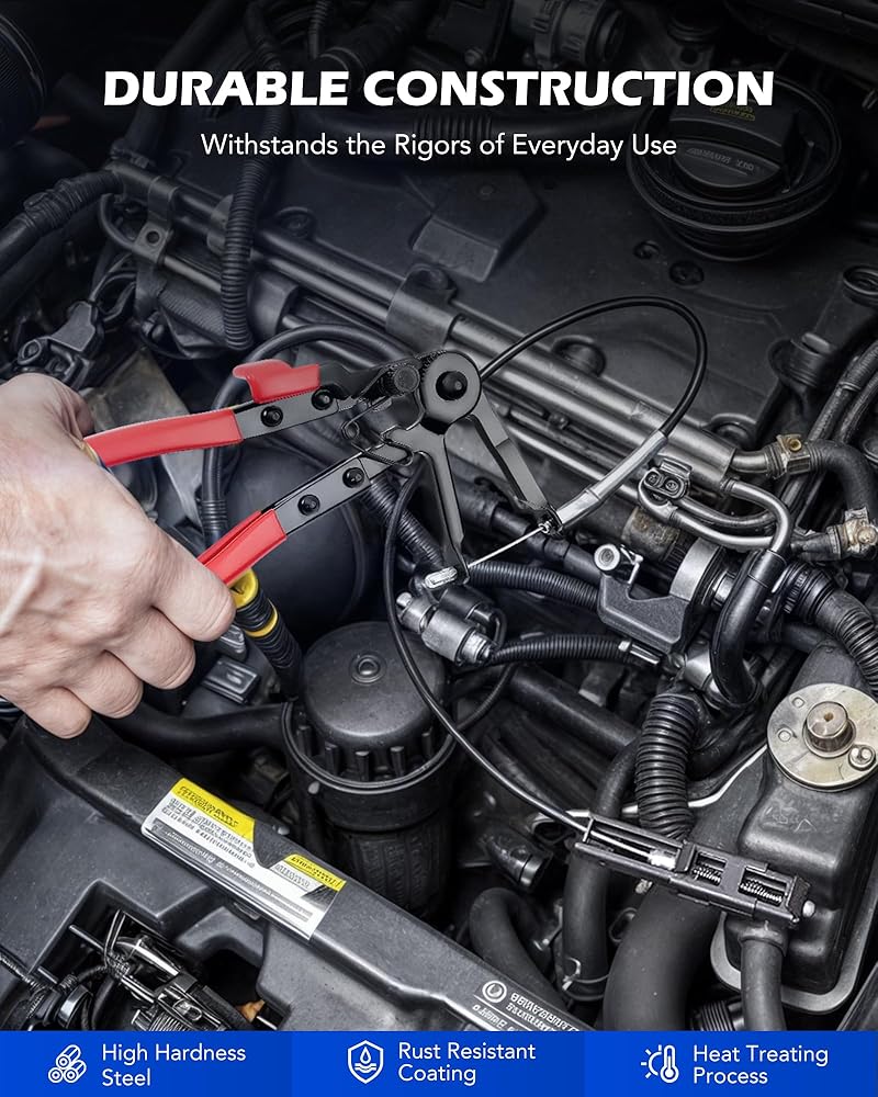 LOCKING DESIGN: The user-friendly locking mechanisms of the 5 spring clamp-compatible pliers keep your clamps held open, freeing your hands and speeding your work; our automotive tools ensure easy fuel, oil, and water hose repair, removal, and replacement in car, truck, and motorcycle engines