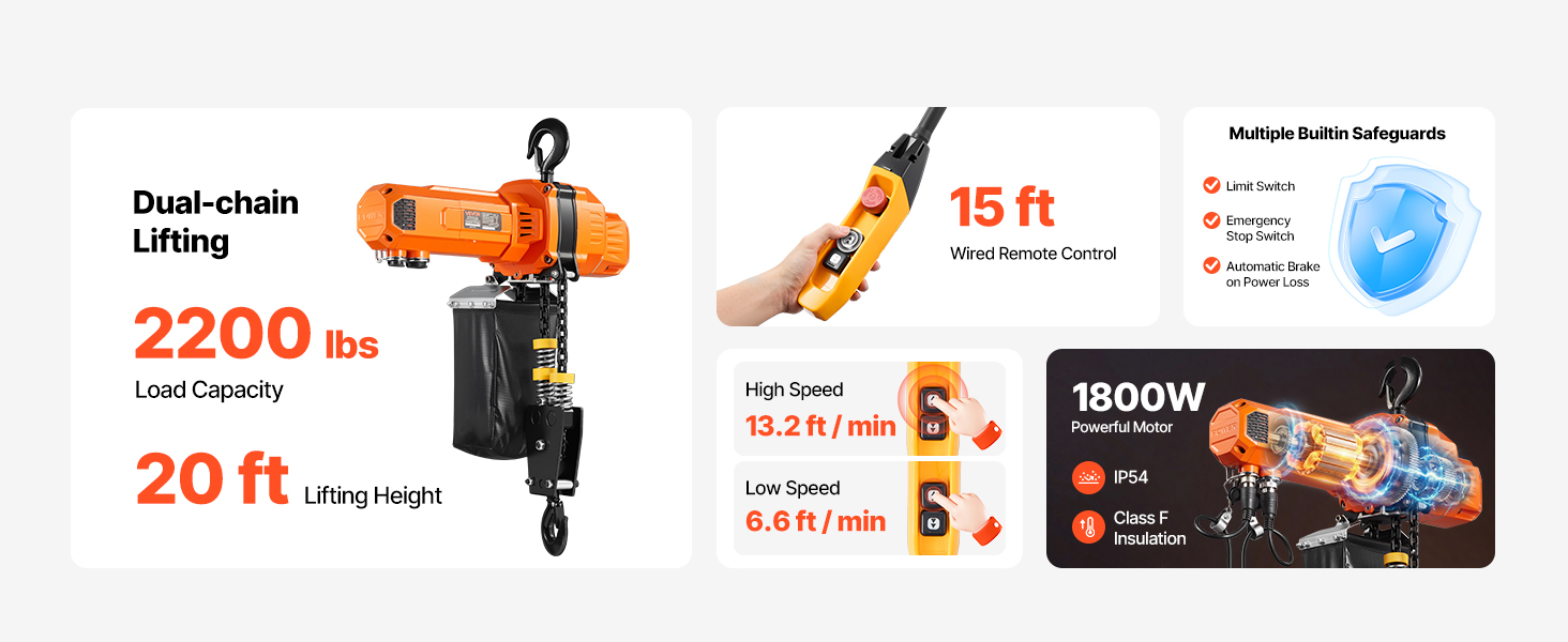 14FT WIRED REMOTE CONTROL: The VEVOR Electric Hoist 2.0 with 14ft Handle Remote Cord is designed to meet your needs for lifting items over long distances. You can lift your items more easily and safely without having to extend the length of the handle cord yourself or use other tools.