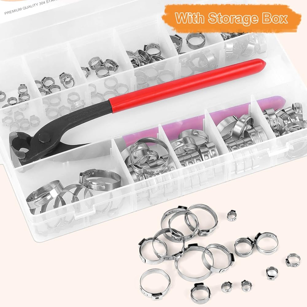 ✅【𝐏𝐥𝐞𝐧𝐭𝐢𝐟𝐮𝐥 𝐒𝐢𝐳𝐞𝐬 𝐂𝐡𝐨𝐢𝐜𝐞𝐬】The 600pcs Pex Pinch Clamp Assortment Kit covers 22 different sizes: 6.5mm, 7mm, 8.7mm, 9.5mm, 10.5mm, 11.3mm, 11.9mm, 12.3mm, 12.8mm, 13.3mm, 14.5mm, 15.3mm, 16.2mm, 17.5mm, 18.5mm, 19.2mm, 21mm, 23.5mm, 25.6mm, 28.6mm, 31.6mm, 33.1mm, all size of tube clamp packed in a sturdy convenient case, can be used for a storage box.