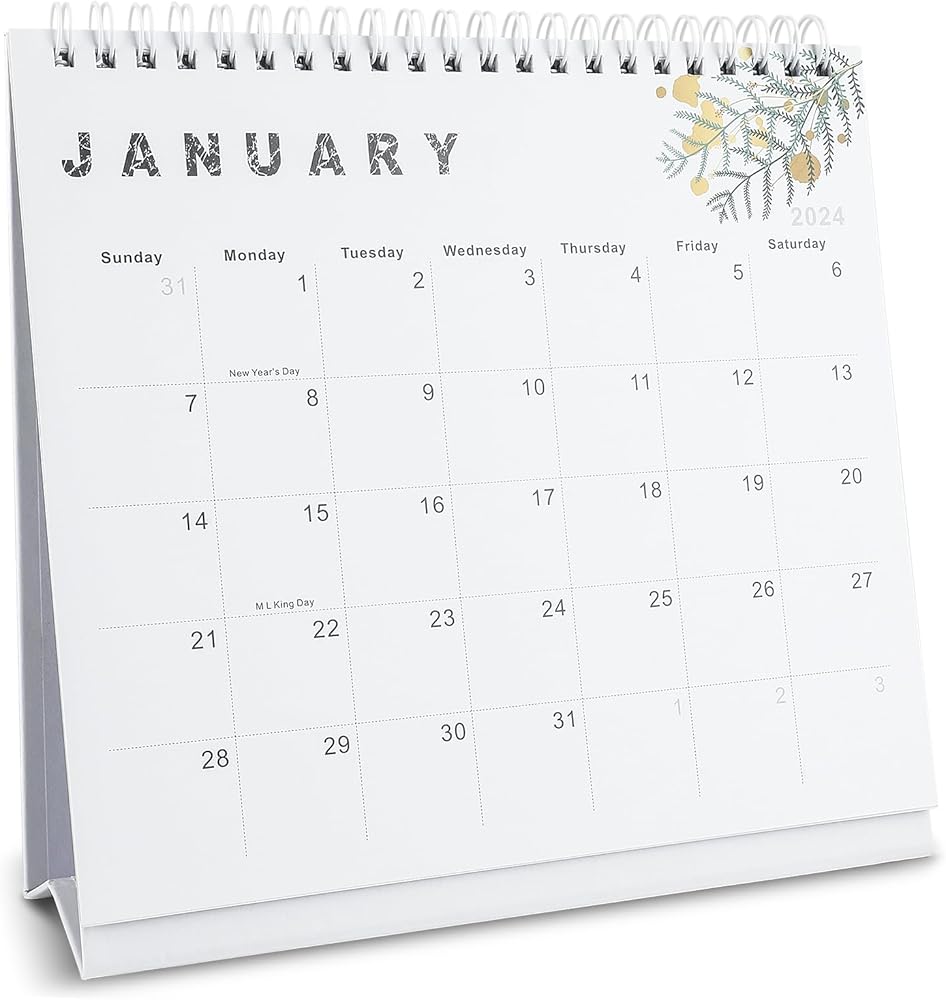 Lbylyhxc 2024 Calendar - 2024 Small Desk Calendar 8x7.5 inch standing desk calendar, Now-December 2024, 18 month flip-up desktop calendar, Aesthetic small desk calendar with round stickers (gold leaf)