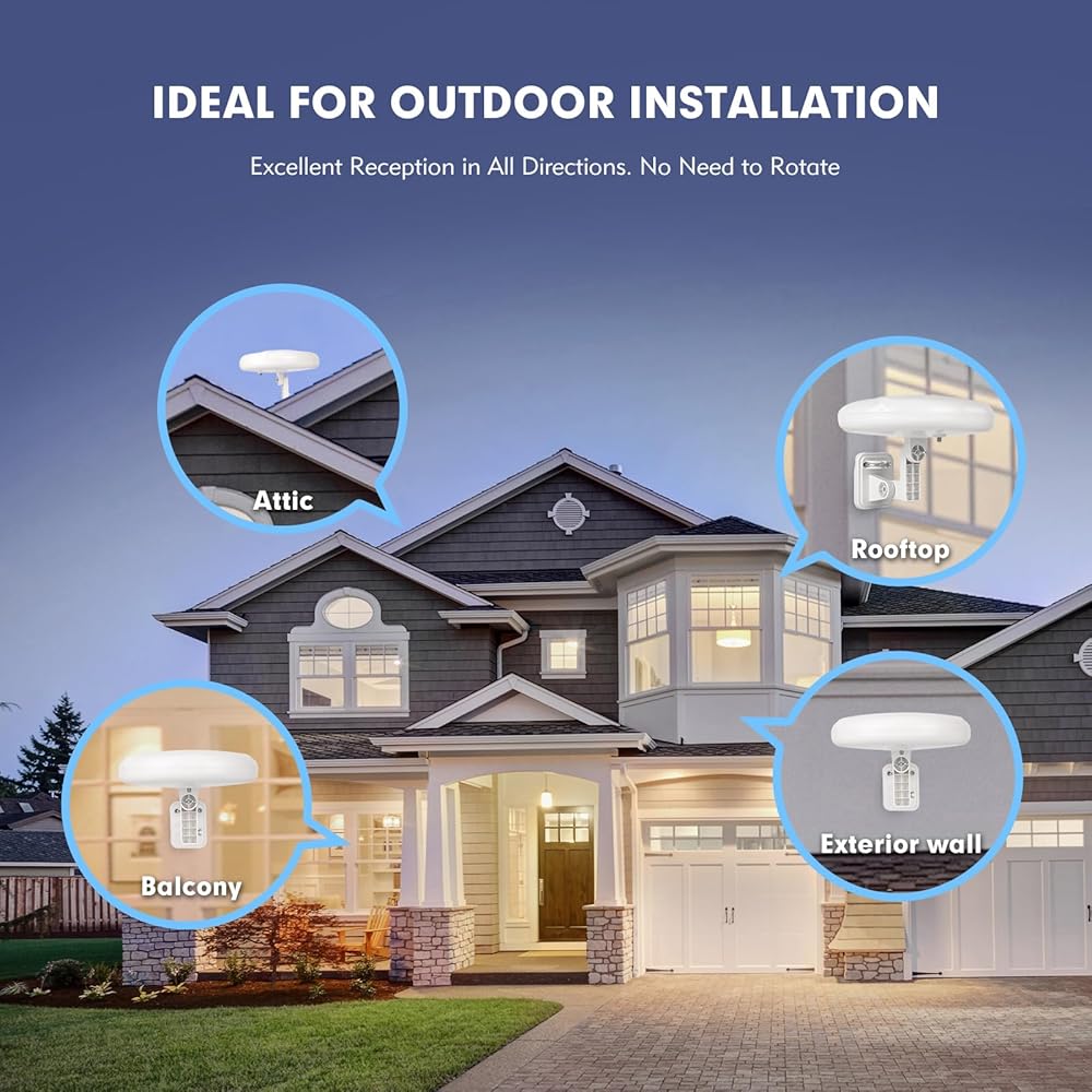 🏘️【Long Range Digital Amplified Outdoor TV Antenna】- Exclusive Smart pass Amplifier technology improves better reception than the old version and provide much better signal reliability on windy or rainy days. Please first find out where the local broadcast towers are in your area.