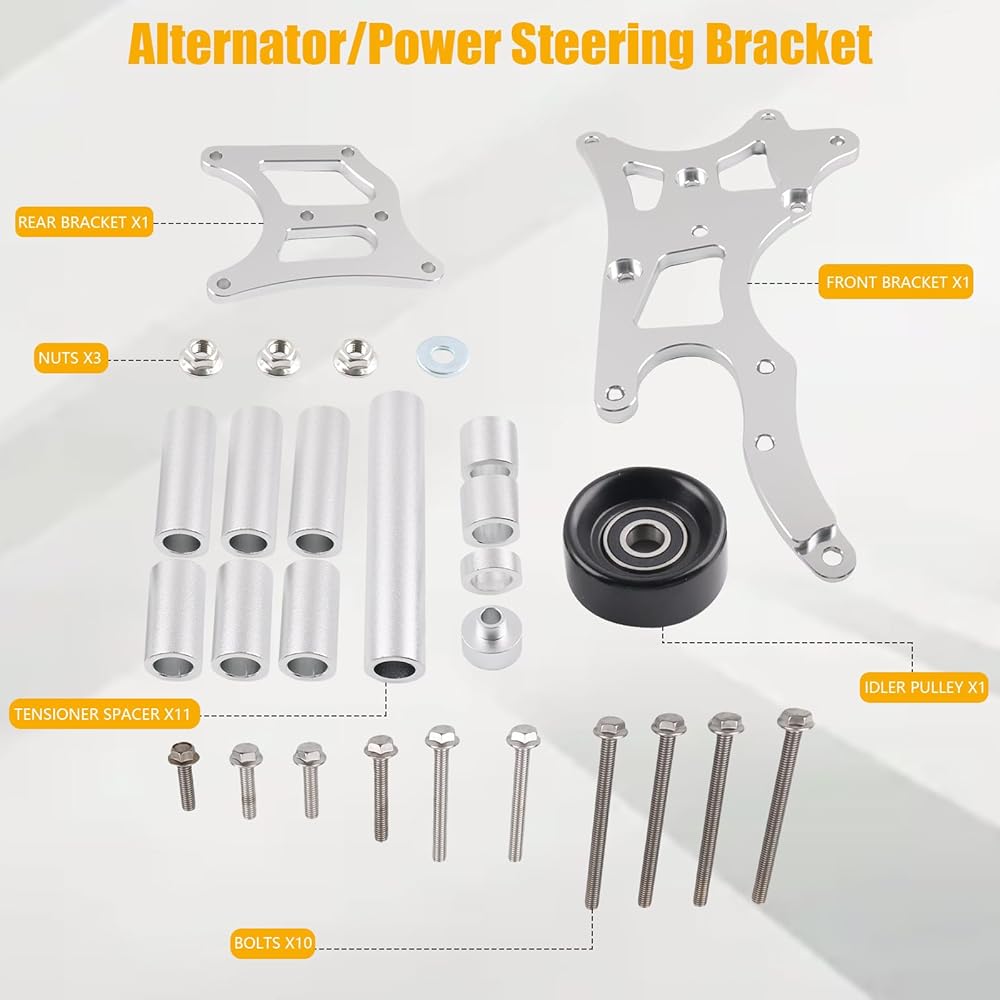 【High Quality】Our bracket pushes the power steering pump up/in, and rotates the alternator 180°, which allows to convert 4.8L 5.3L 6.0L 6.2L (for LS) engines into a older car with small frame or engine bay. 【Notice】Organ