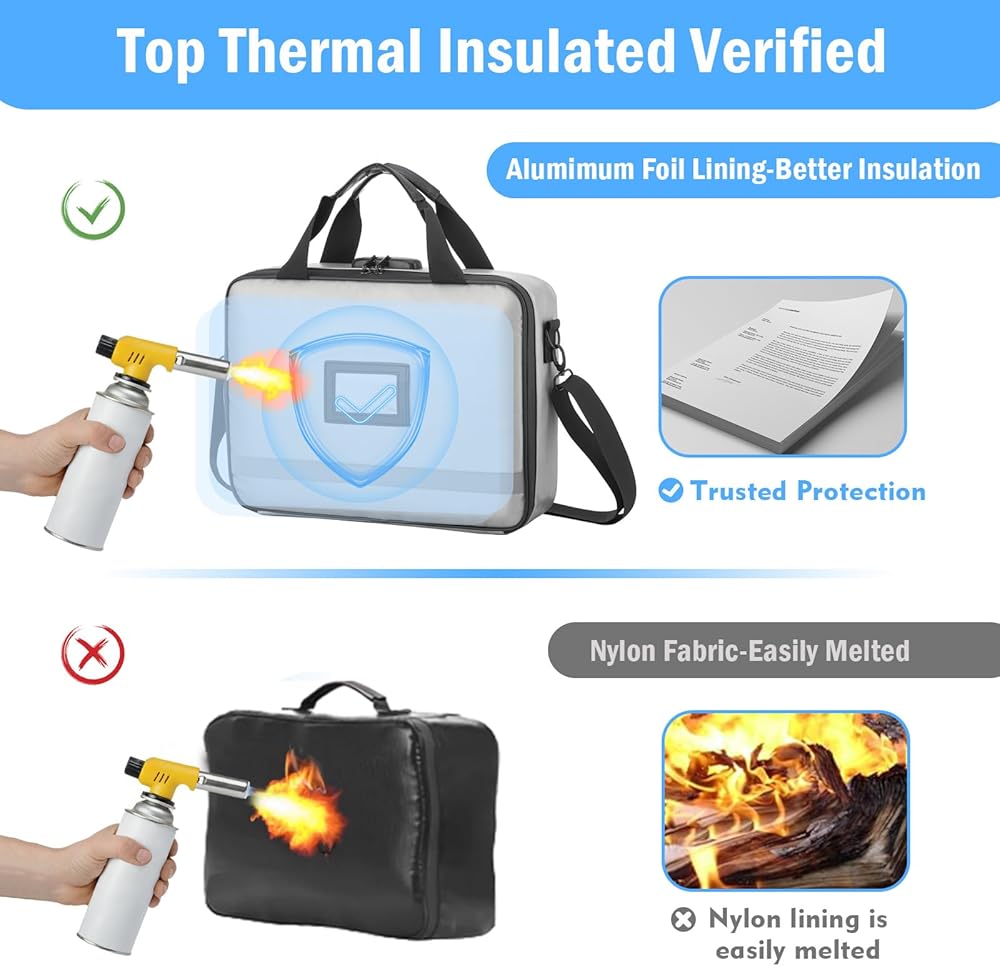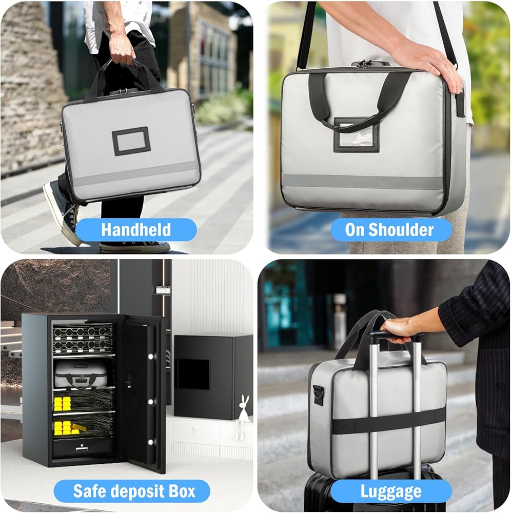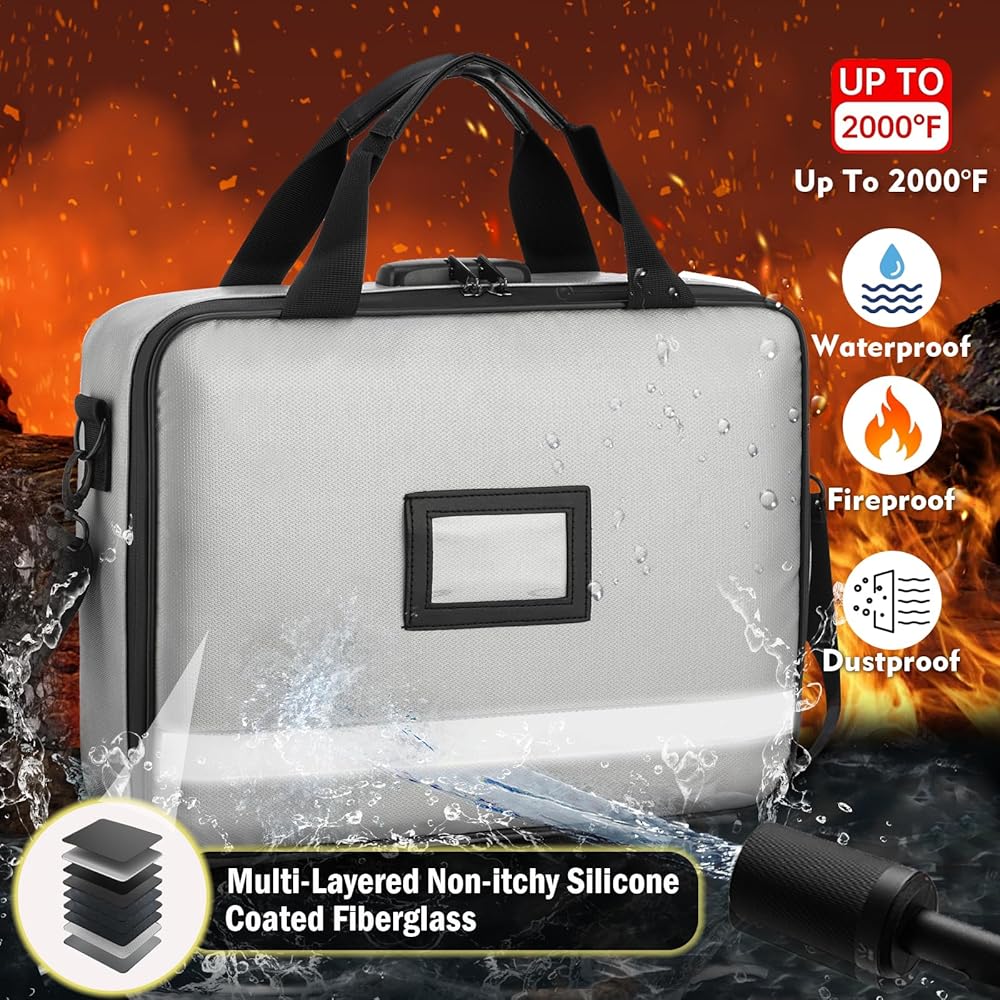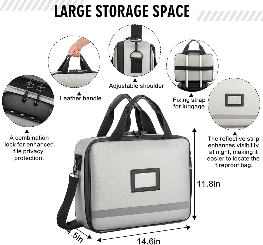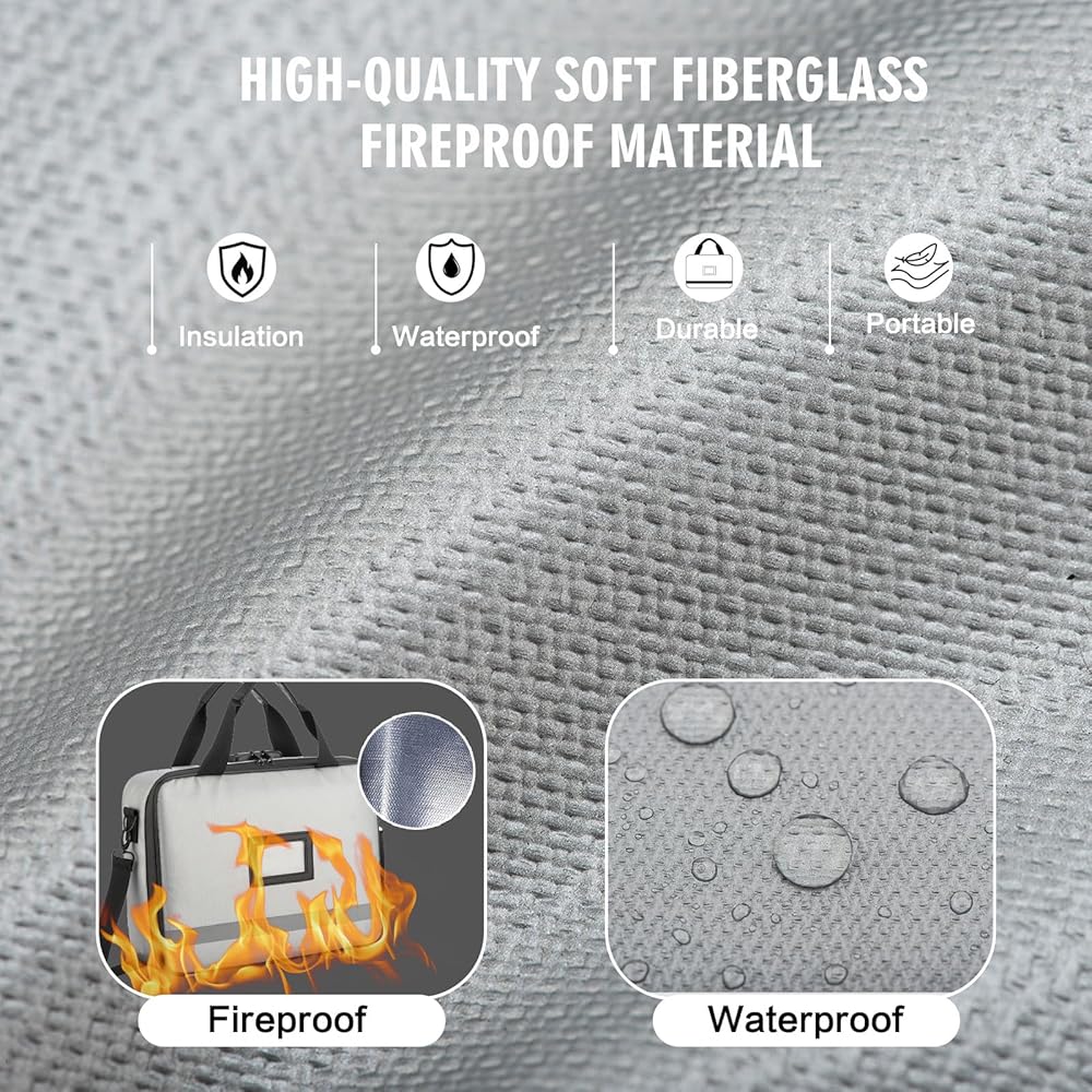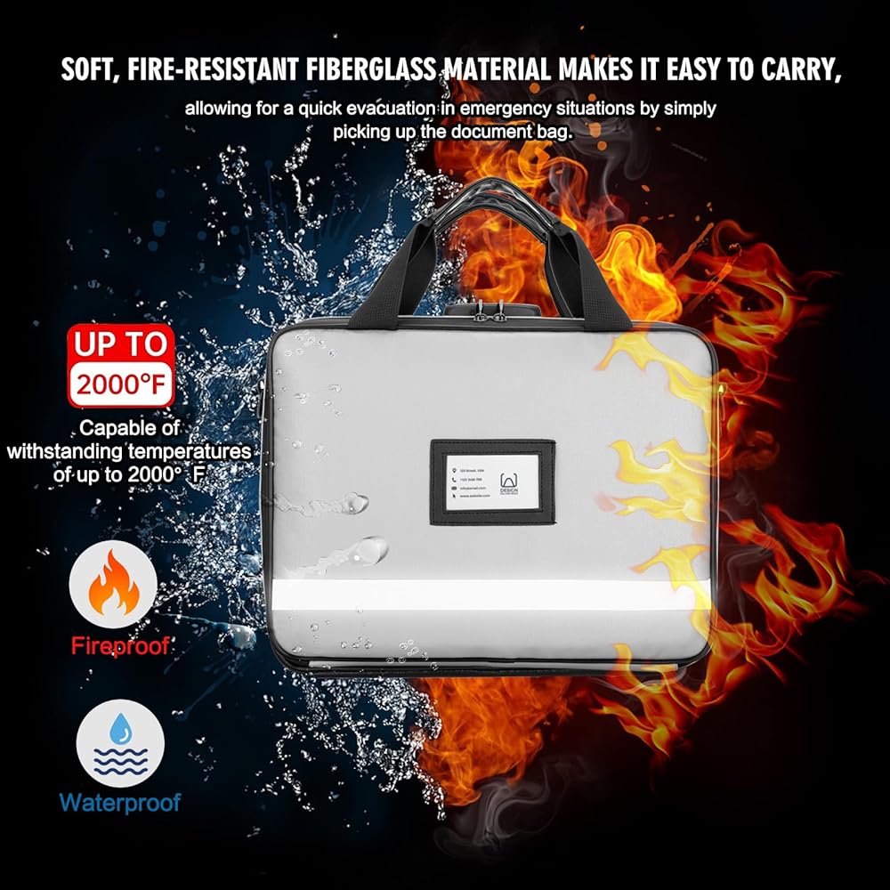 【Lightweight and Easy to Carry】: Differing from the bulkiness and rigidity of a document safe, this fireproof document bag is made from non-hardshell fiberglass fire-resistant material, providing ample space and portability. It also comes with a handle, making it easy to carry in emergencies.