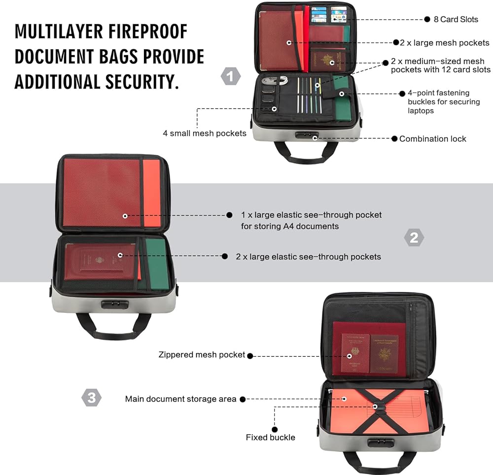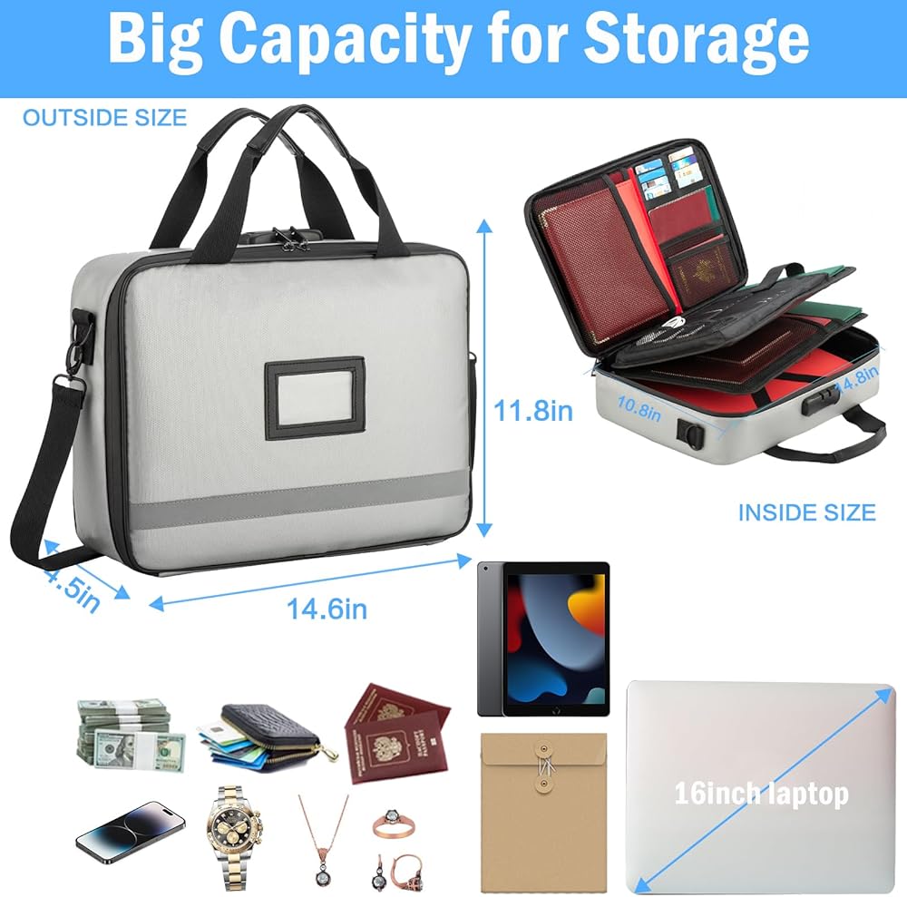 【Waterproof, Secure, and Fireproof Document Storage Bag】: This important document organizer is perfect for keeping important documents, external hard drives, credit cards, gift cards, photos, jewelry, cash, and other items well-organized while ensuring their safety.
