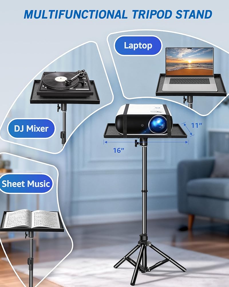 Lusweimi Projector Stand Tripod, 56 Inch Height Adjustable Laptop Stand with 16x11 Inch Tray, Portable Projector Mount, Stable Tall Tablet Floor Stand for Office, Home, Outdoor, Studio and DJ Racks