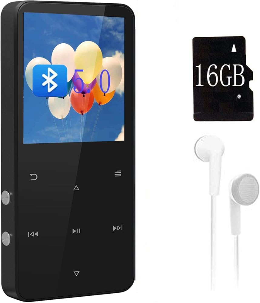 Mp3 Player with Bluetooth 5.0,16GB Music Player with Speaker,Portable HiFi Sound with FM Radio,Voice Recorder,E-Book,Sport Pedometer,Super Light Metal Shell Touch Buttons with TF Card Expansion