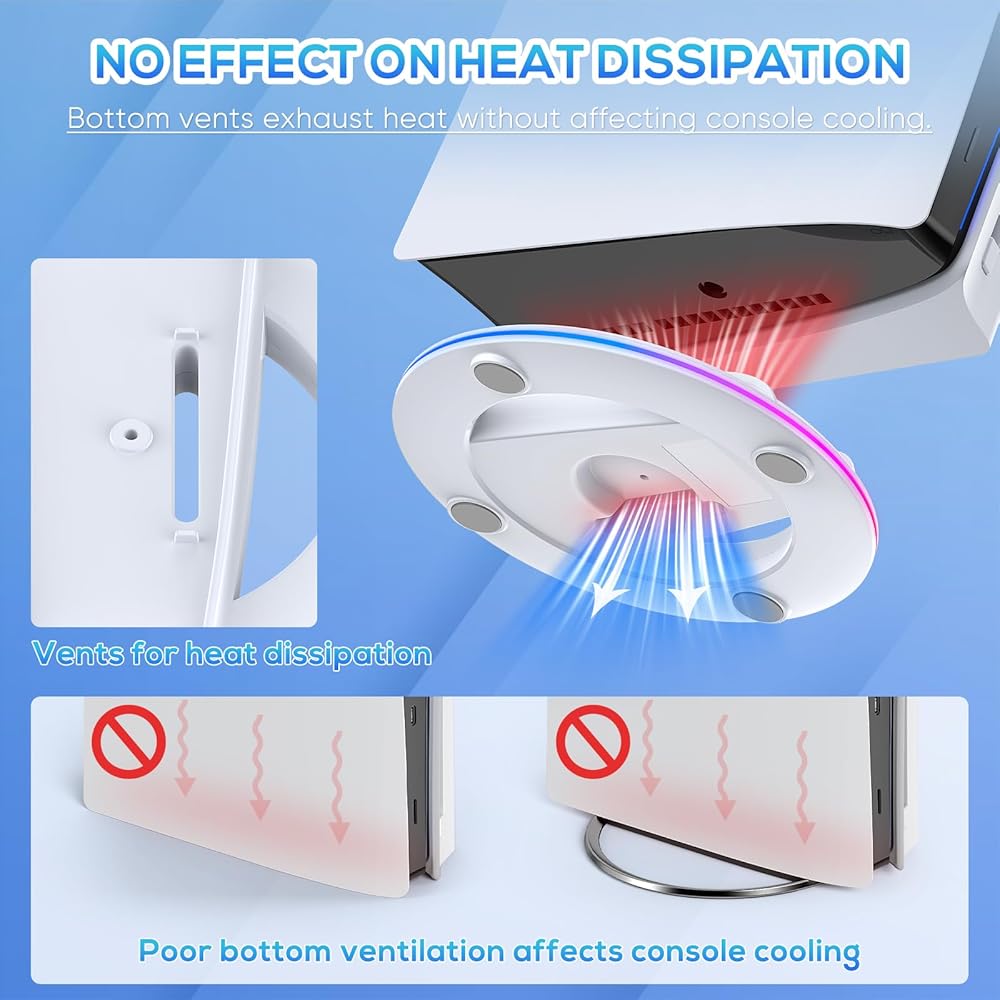 【Structure for better heat dissipation】The vents at the bottom do not prevent the heat dissipation of the console. If players don't like the light, they can disconnect the USB cables and use it as a simple stand only.