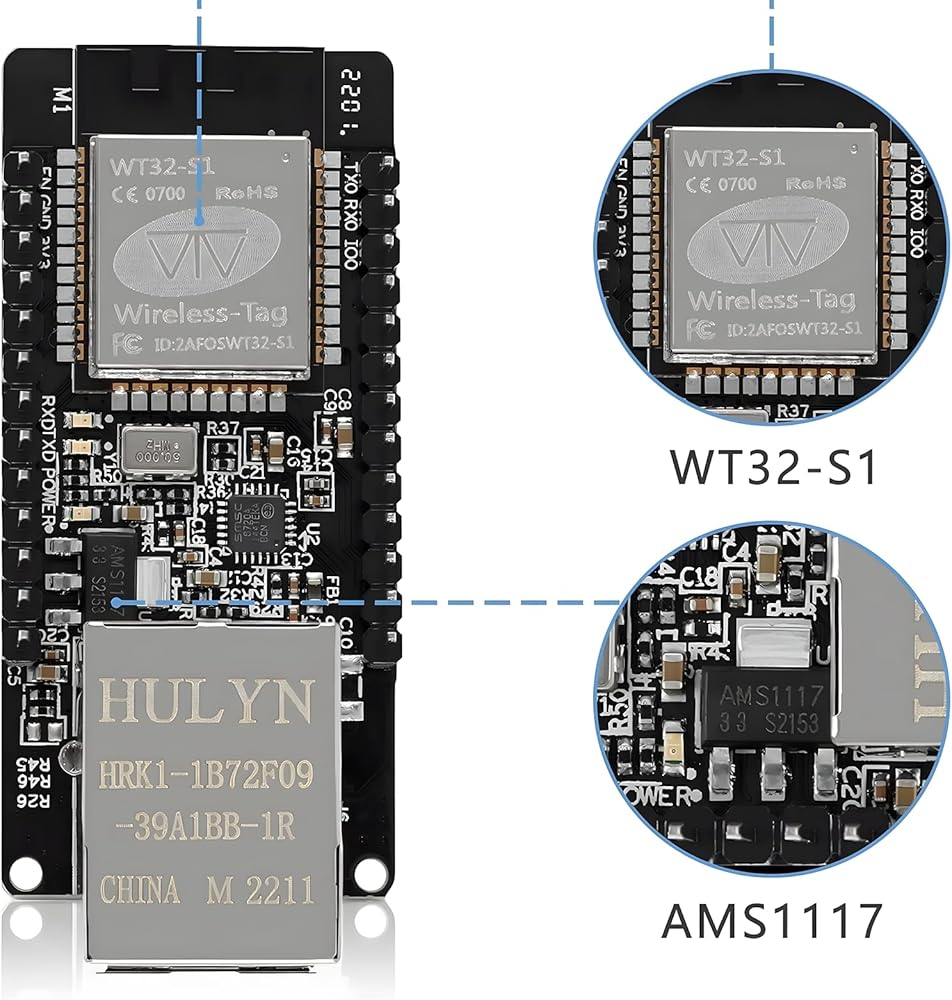 WT32-ETH01 Development Board Ethernet - ESP32 Development Board Module Embedded Serial Port to Ethernet 2.4GHz Wi-Fi & Bluetooth Dual-Mode Support Ethernet