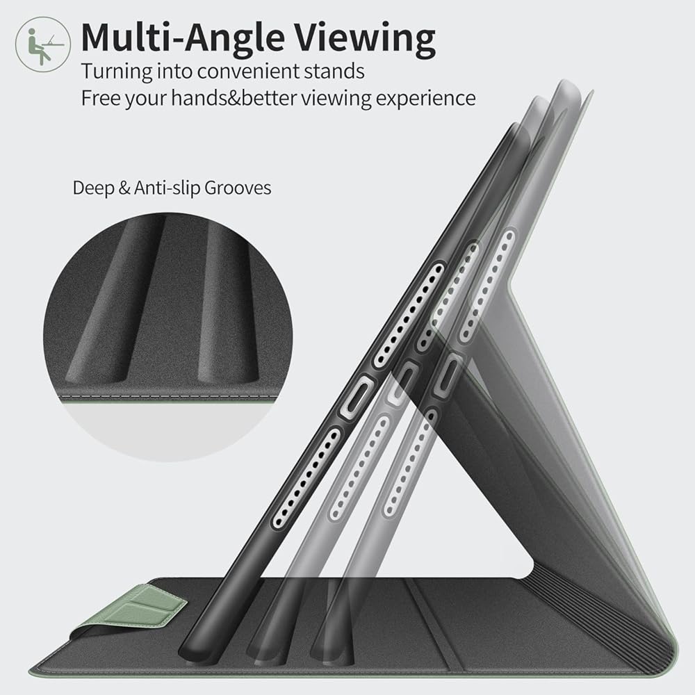 【MULTI-Angle Viewing &Typing】 - Anti-slip interior material and deep grooves make the iPad stand securely at different angles. No slips! Convenient stand position for watching movie and typing