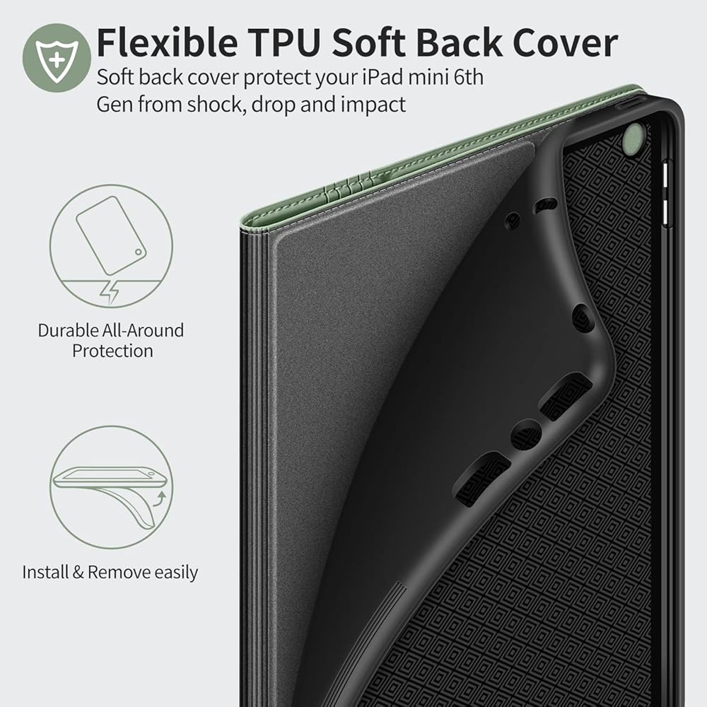 【Full Protection】 - Premium synthetic leather exterior & Polyurethane interior, waterproof and easy to clean. The flexible TPU soft back cover firmly hold on your ipad, install & remove easily without effort