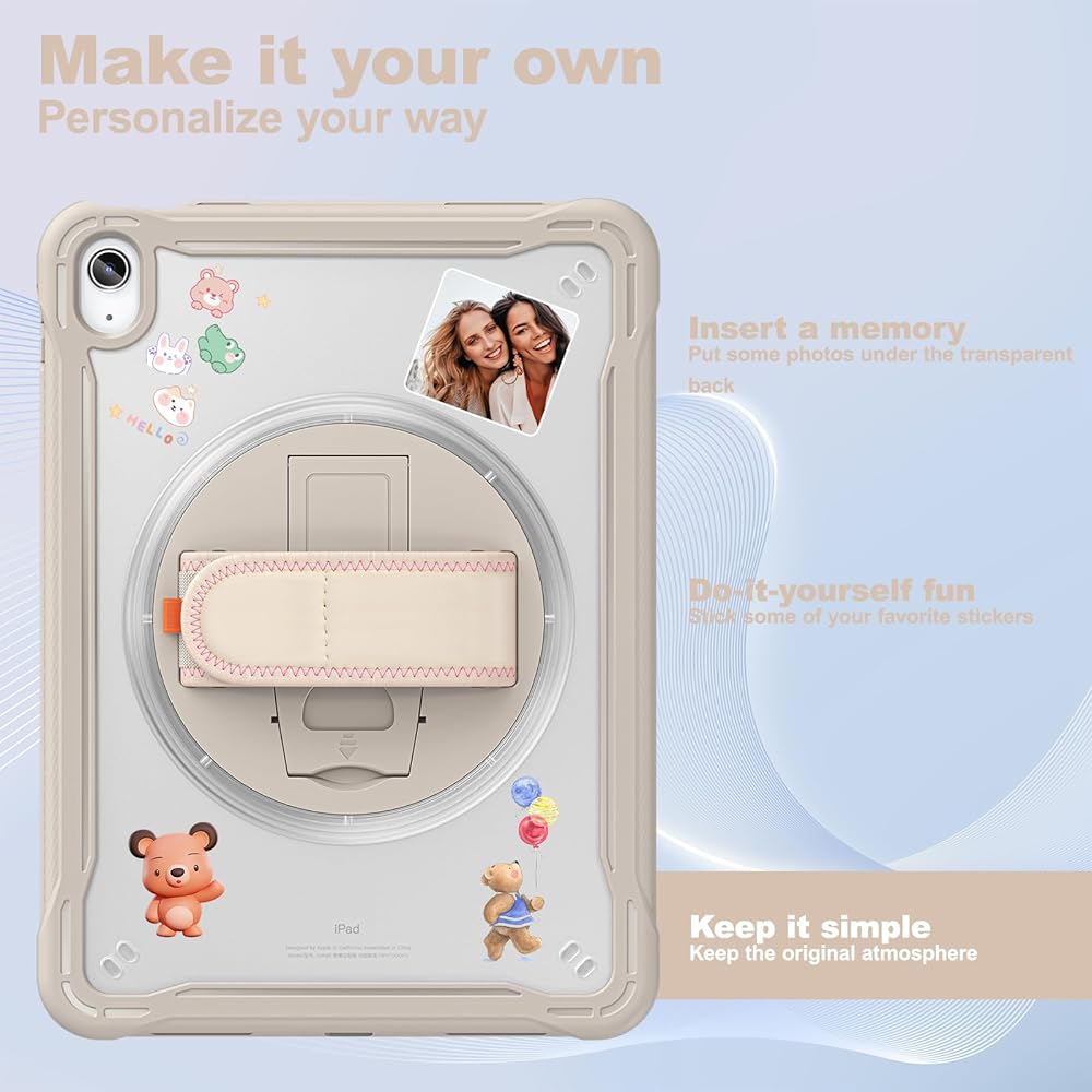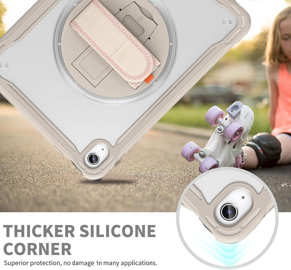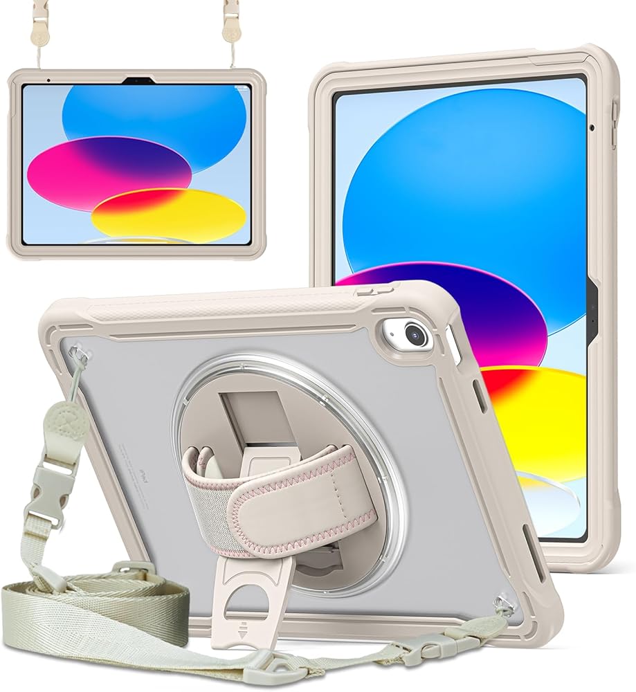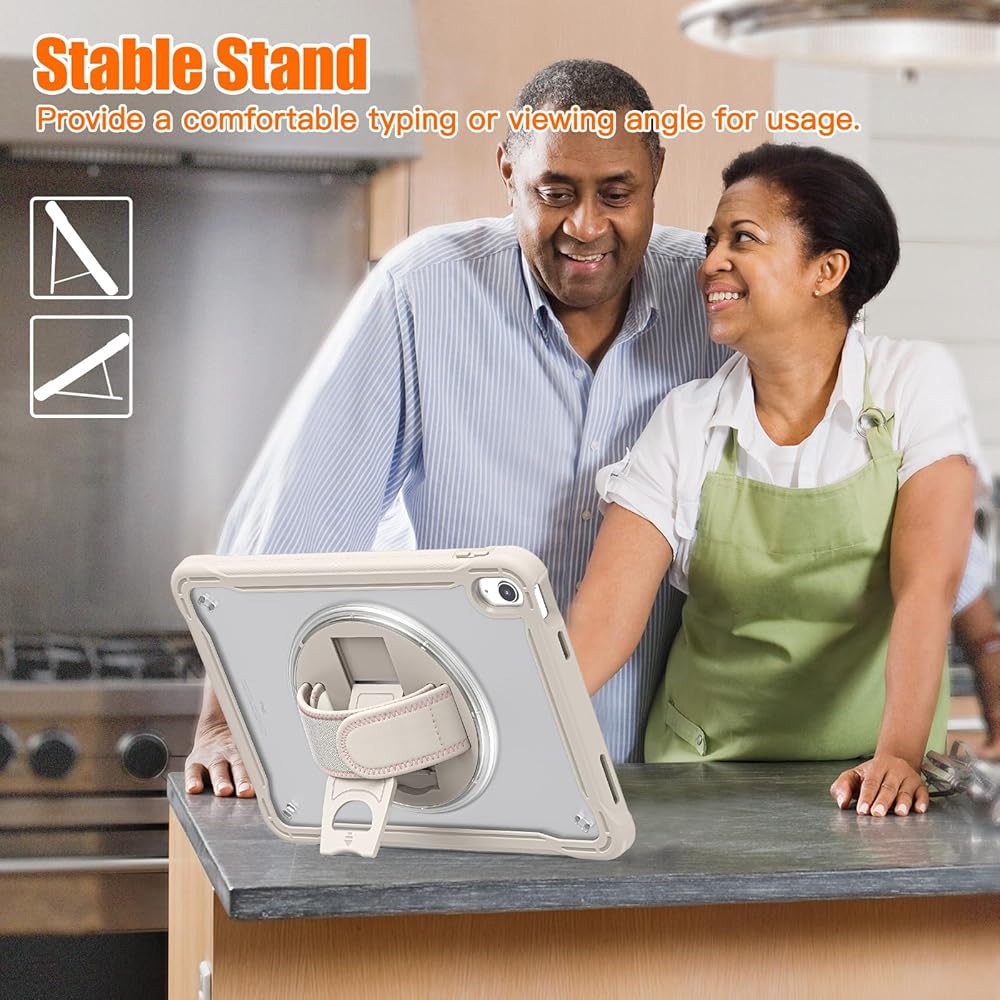 𝐀𝐝𝐣𝐮𝐬𝐭𝐚𝐛𝐥𝐞 𝐇𝐚𝐧𝐝 𝐒𝐭𝐫𝐚𝐩 & 𝐏𝐨𝐫𝐭𝐚𝐛𝐥𝐞 𝐒𝐡𝐨𝐮𝐥𝐝𝐞𝐫 𝐒𝐭𝐫𝐚𝐩 & 𝐑𝐨𝐭𝐚𝐭𝐢𝐧𝐠 𝐒𝐭𝐚𝐧𝐝: Provide the protection and convenience when you play or work with iPad. Hang it anywhere for your entertainment, makes you using 𝐢𝐏𝐚𝐝 𝟏𝟎𝐭𝐡 𝐆𝐞𝐧𝐞𝐫𝐚𝐭𝐢𝐨𝐧 𝐜𝐚𝐬𝐞 easily. 360 Degrees rotating Kickstand provides convenient viewing, with soft strap, easy to use your 10th gen iPad in your outdoor travelling, working, gaming with kids.