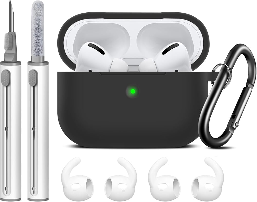 Linsaner for AirPods Pro Case Cover with Keychain,Comes with a Cleaning Pen, Full Protective Silicone Skin Accessories for Women Men Girl with Apple AirPods Pro Case,Front LED Visible,Black