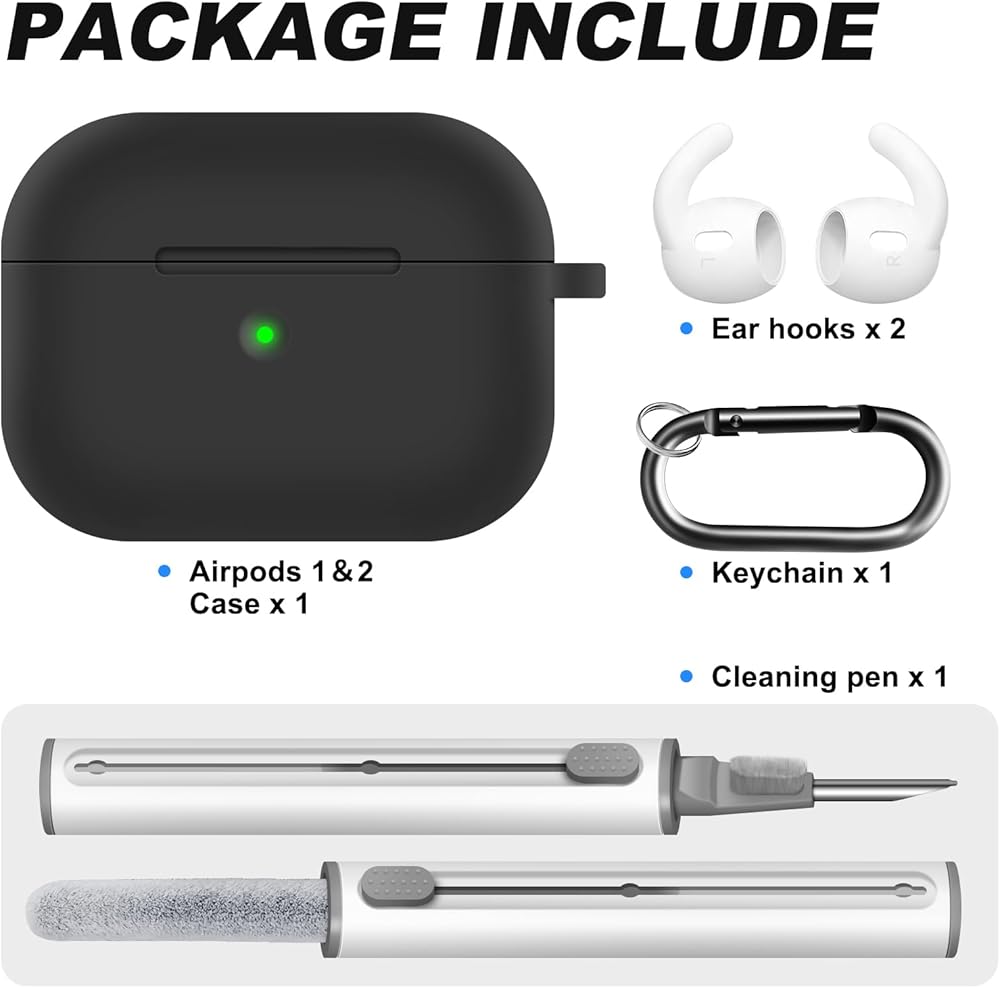 【The Package Include】 - ou will get 1 x Airpods case cover ,1 x portable carabiner , 1 x white cleaning pen and 2 pair of earhooks.You can hang in any place you like, and don't have to worry about Airpods losing.