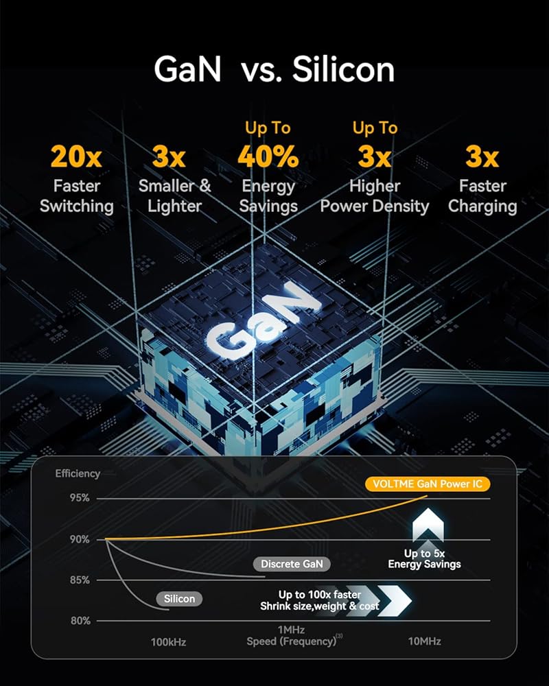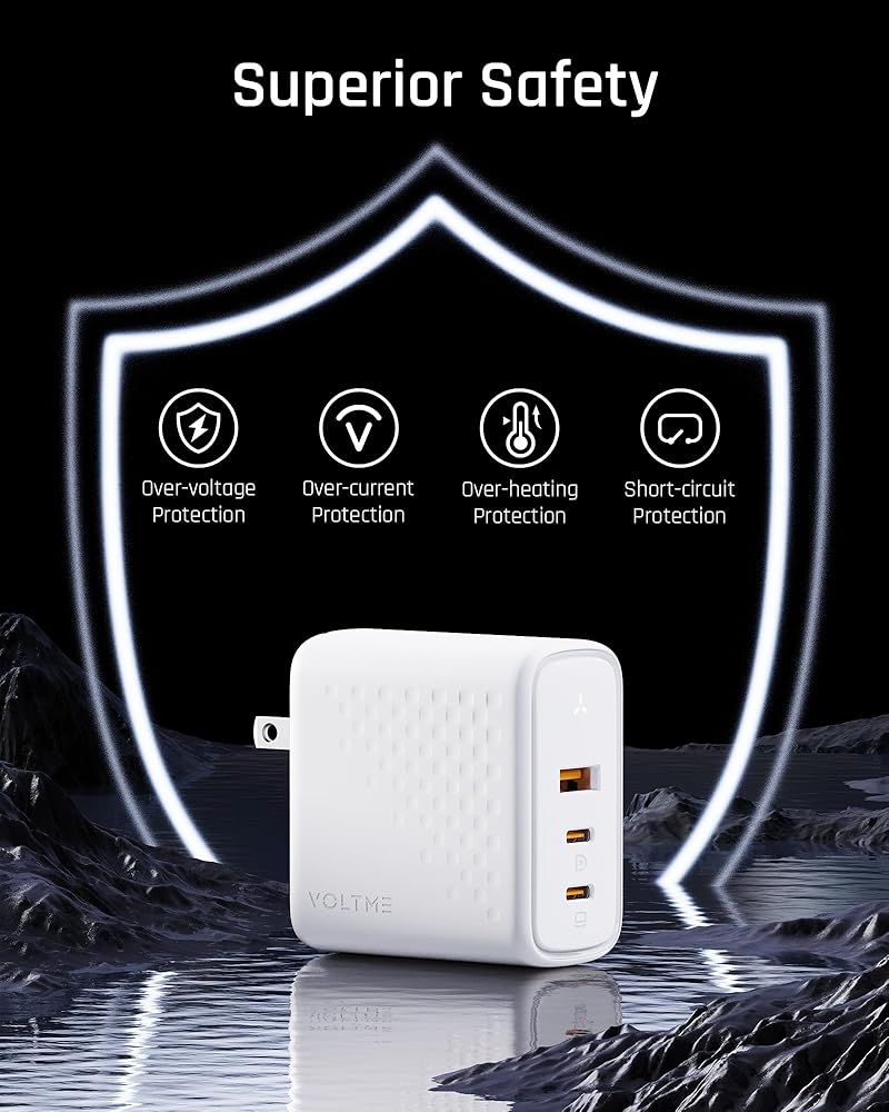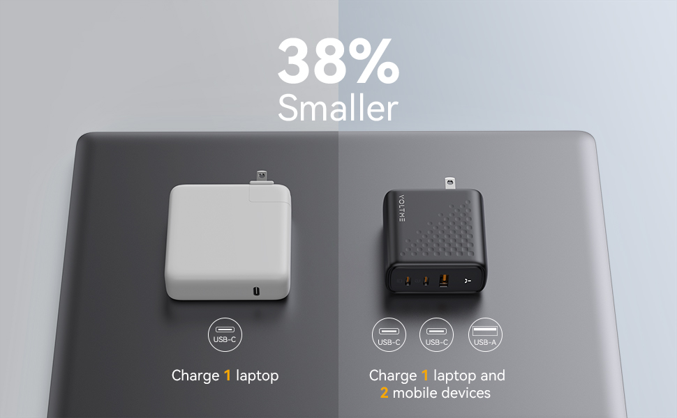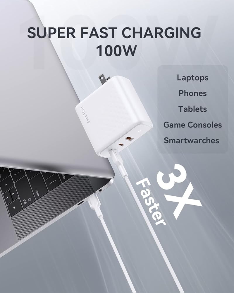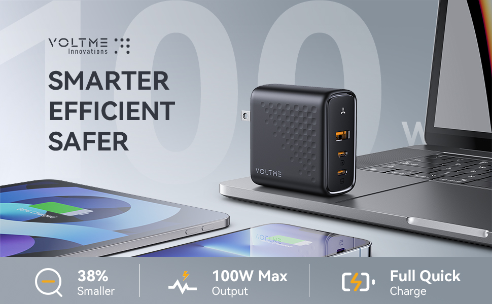 شاحن فائق السرعة: يعتمد شاحن VOLTME 100W USB C على أحدث تقنيات GaN التي تتميز بكثافة طاقة أعلى بمقدار 3 مرات من أجهزة الشحن التقليدية. الحد الأقصى للإخراج هو 100 واط، وسوف يشحن معظم أجهزة الكمبيوتر المحمولة والهواتف بسرعة كاملة. سيضمن التعرف التلقائي والتخصيص الذكي للطاقة حصول جهازك على الطاقة المناسبة التي يحتاجها.