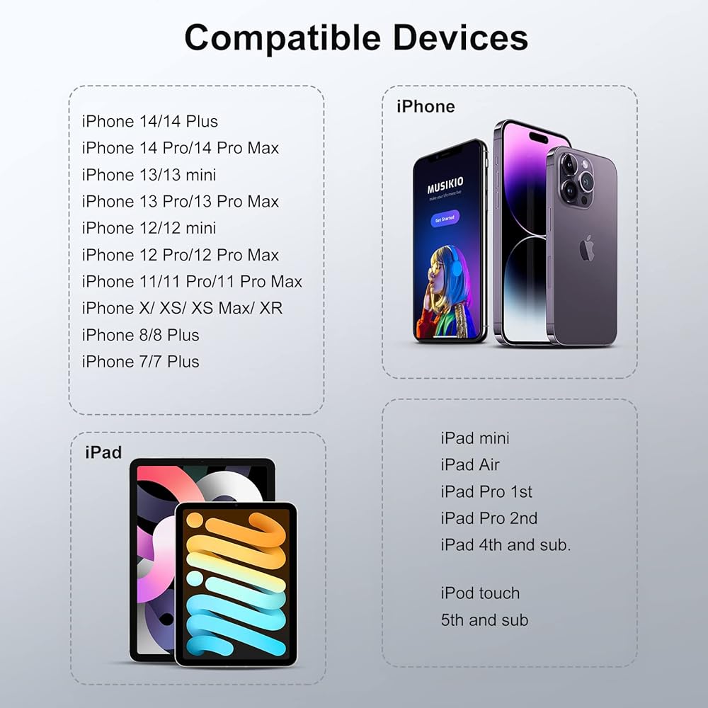 【Excellent Compatibility】Support iOS 10 or later, including 100% compatible with iPhone 14/14 Plus/14 Pro/14Pro Max/13/13Mini/13 Pro/13 Pro Max/12/12 Mini/12 Pro/12 Pro Max/11/11 Pro/11 Pro Max/X/XS/XS Max/XR8/8 Plus/7/8 Plus ect.