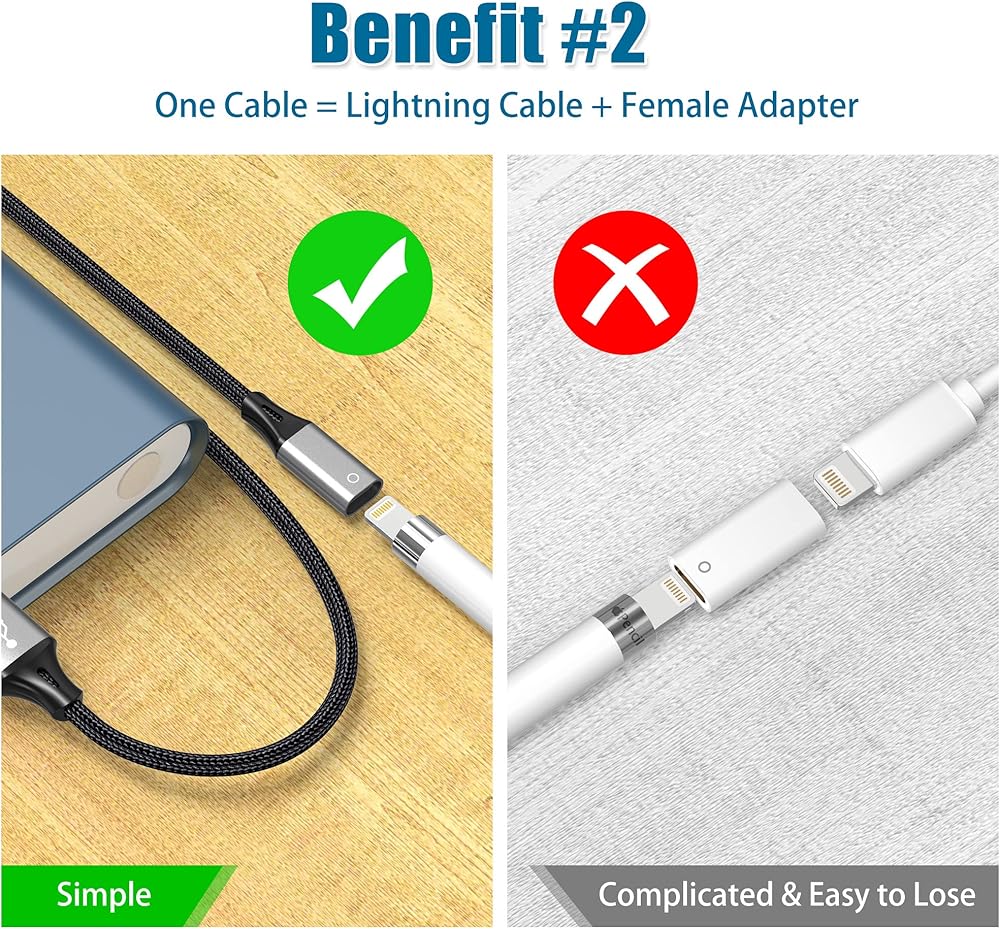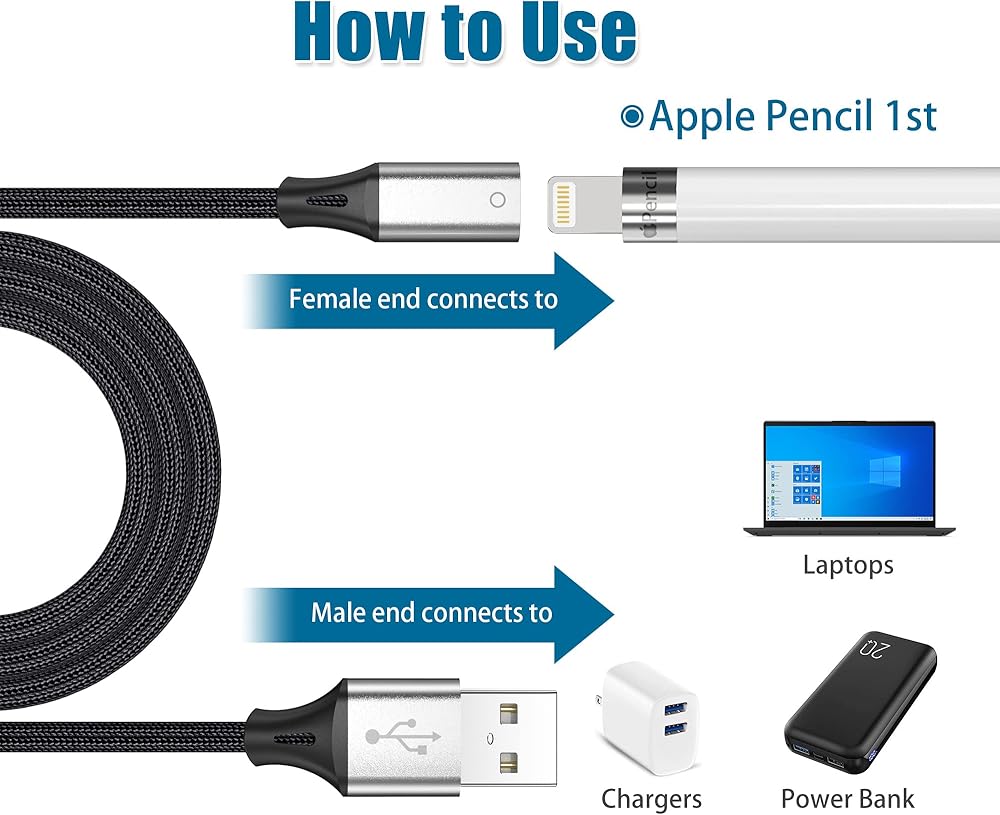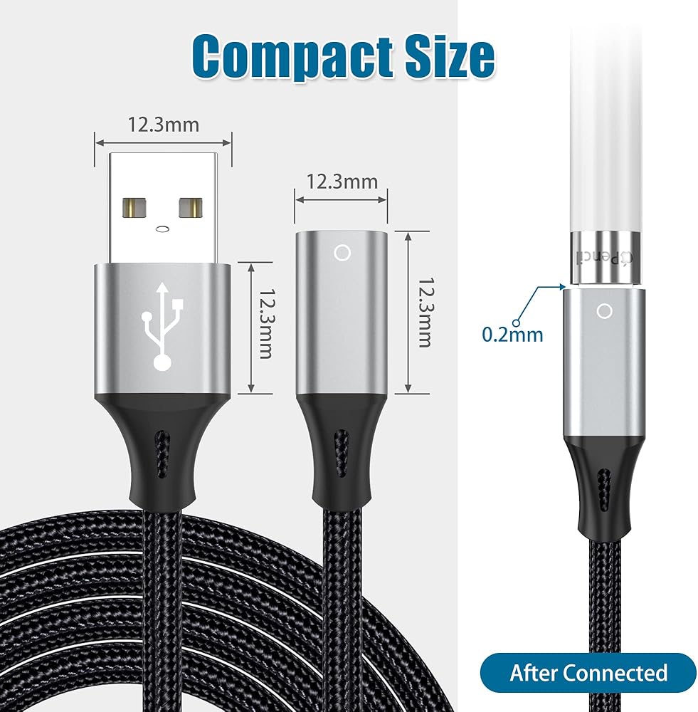 AGVEE 1.5ft USB-A Male to Lightning Female Charging Adapter Cable for Apple Pencil 1st Generation, Enables iPencil Gen 1 Match iPad with USB-C Port(Not Plug & Play, Need Extra Steps), Dark Gray