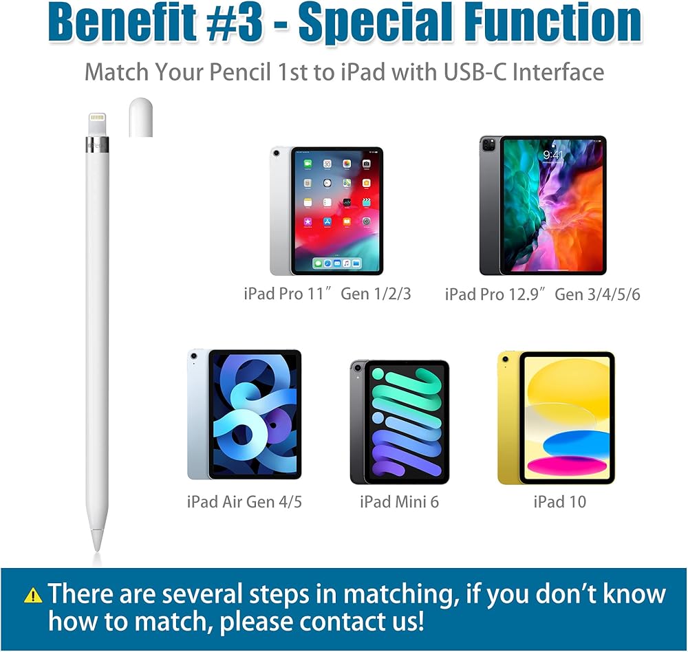⭕[IMPORTANT NOTE] It takes several steps to pair Apple Pencil 1st Gen to an iPad with USB-C interface, if you don't know how to pair it, please contact us after receiving the goods and we will give you a very detailed operation method.