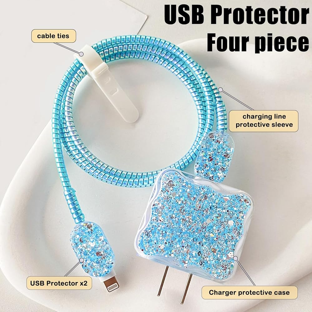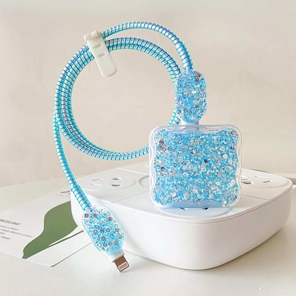 ♥ [Ideal Gift] - The Glitter cable protector for iPhone special patterns with cute and unique-looking wave pattern make your phone charger distinctive and eye-catching. you can be used as a gift for kids, family, friend who are troubled by data line interface damage etc.
