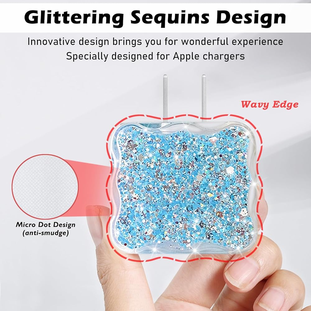 CameCosy Luxury Cable Protector Compatible for iPhone Charger Glitter Wave Edge Design,Data Line USB Case Wire Cable Saver Phone Charger Protector for iPhone XR 8 11 12 13 14 Plus Pro Max - Blue