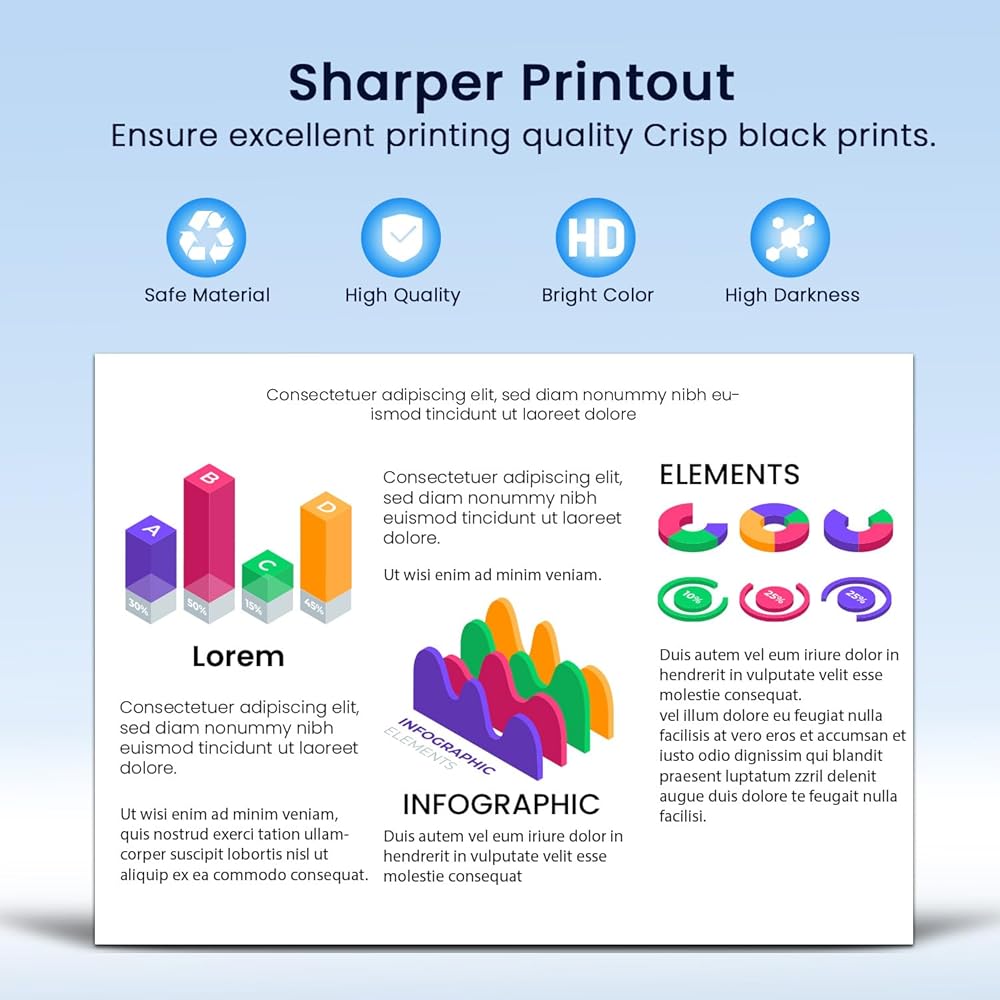 • PRINT FRIENDLY: The latest ink formulas are odorless, fast drying, and won't damage the printer, minimizing ink leaks and reducing the risk of clogged print nozzles.
