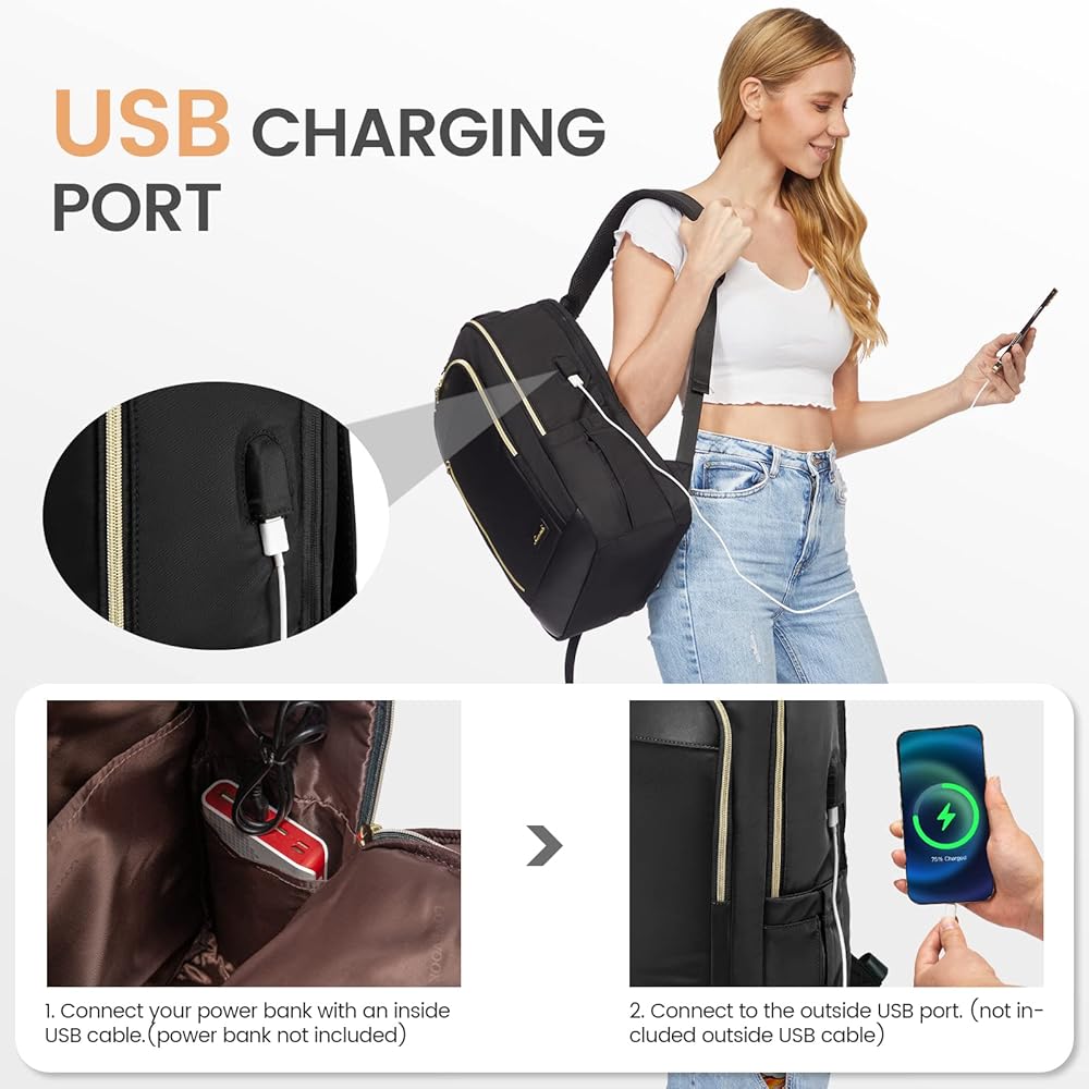 🔋⚡【USB CHARGING PORT】-- Backpack Purse Size: 16.5"H x 11.5"L x 4.5"W. Liberate your hand on the journey with USB charging port , you need place your own power bank or battery pack inside and plug the connector to it.