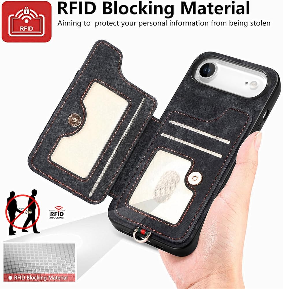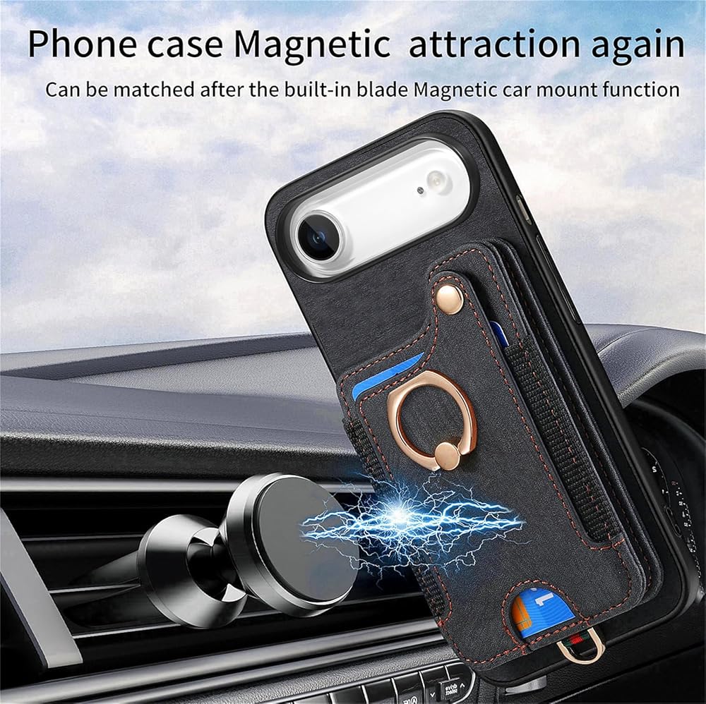 for iPhone Air Phone Case Wallet with Card Holder,PU Leather Flip Folio Case,RFID Blocking Ring Holder Kickstand Wrist Strap Magnetic Protective Women Men Cover for iPhone Air Black