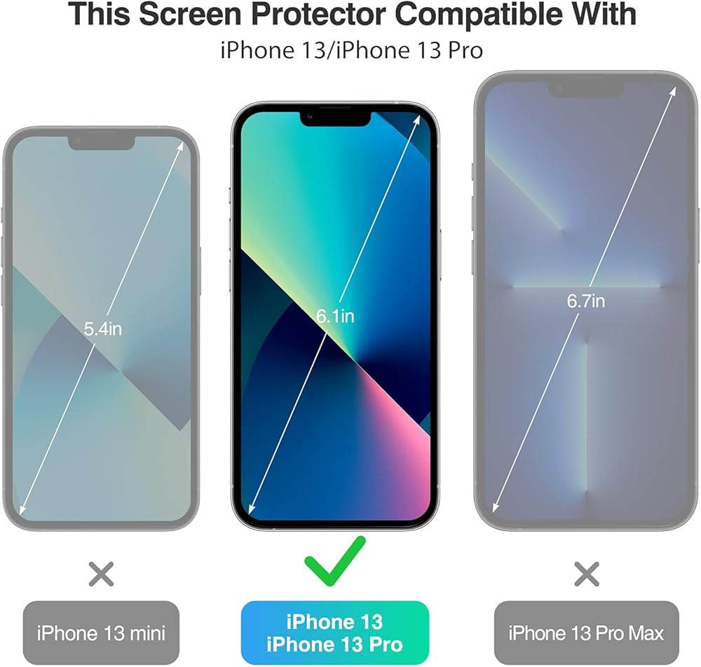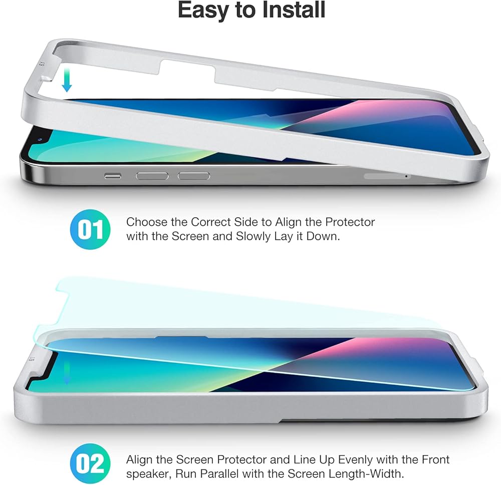 Instruction of Install for iPhone 13 Tempered Glass:Super Easy to Install the 6.1" Glass Screen Protector with an Installation Guidance Frame to Assist with the Application Process.