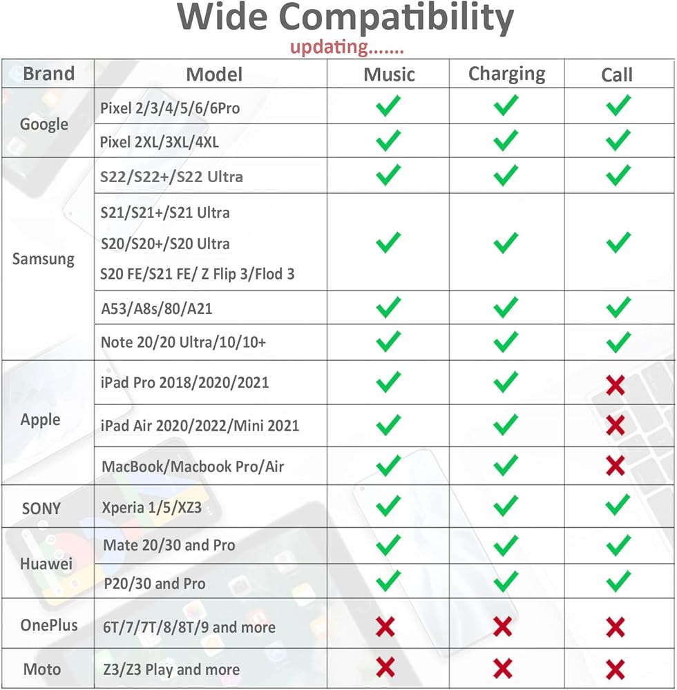 Widely Compatible: Compatible with most of USB C Phones, Tablets, Laptops such as iPhone 15/15 Plus/iPhone 15 Pro/iPhone 15 Pro Max, Google Pixel 7/6/5/4/4XL/3/3XL/2/2XL,Samsung Galaxy S23/S23+/S23 Ultra/S22/S22+/S22 Ultra/S21/S21+/S21 Ultra/S20/S20+/S21FE/S20FE, Samsung Galaxy Note 20/20Ultra/Note 10+, iPad Pro 2020/2021, Razer Phone and More.