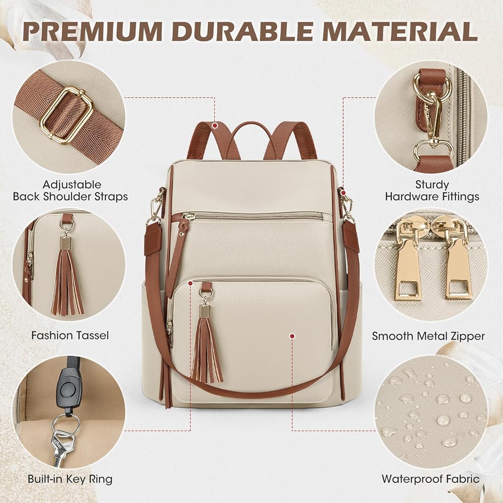 【Premium Material】: This backpack purse is made of premium waterproof and tear-resistant PU leather material, with a soft lining, smooth zippers, and reinforced stitching, ensuring durability. There is a cute tassel next to the front zip pocket, adding a touch of sophistication to your ladies' leather backpack. Choose this stylish and durable backpack to effortlessly elevate your fashion sense.