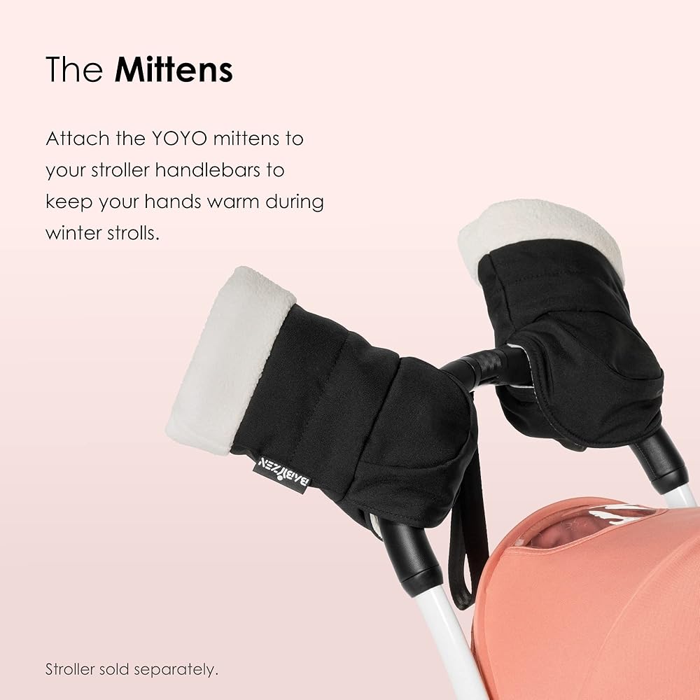 STROLLER MITTENS - Designed specifically for your stroller, the YOYO Mittens attach to the handlebars with Velcro so you can quickly pull your hands out to take care of baby. Compatible with all YOYO generations.