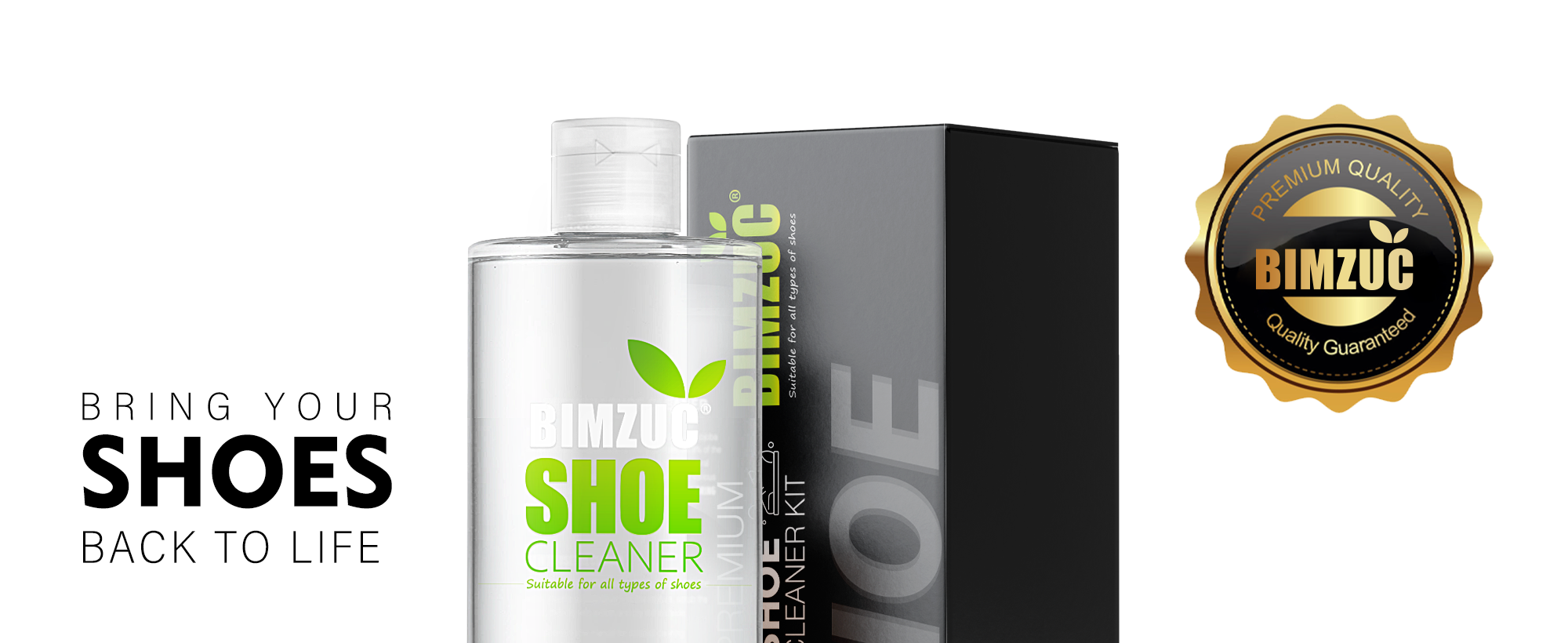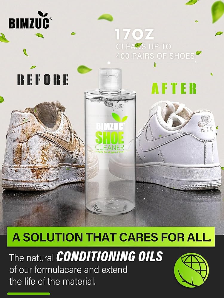 Bimzuc Shoe Cleaner – Our Essential Kit includes a 17 oz. bottle of our Cleaning Solution