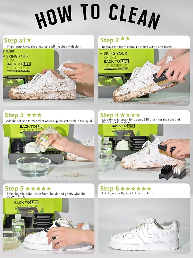 Just a Few Drops (Please Read Directions on Bottle) – This is a shoe cleaner CONCENTRATE - A little goes a long way. Follow instructions and keep shoes ( Nike, Jordans, Vans, yeezy, etc.) , black, white shoe, sandals, boots, espadrille, and fabrics looking new again
